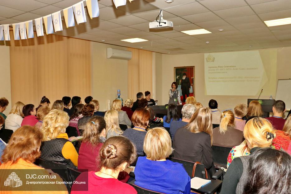 Конференция, организованная МГПИ «Бейт Хана», совместно с Департаментом образования и науки ДнепрОГА и «Днепровской академией непрерывного образования», состоит из двух частей – четырех основных докладов, а также мастер-классов и секционных занятий. С приветственным словом к участникам Конференции обратилась ректор МГПИ «Бейт Хана» Римма Аронова. Затем прозвучали основные доклады по работе инклюзивно-ресурсных центров, актуальным вопросам мониторинговых исследований, современным техническим средствам для обучения детей и подростков с особенными образовательными потребностями и по школьным фобиям, их клинической картине, диагностированию, лечению и профилактике.