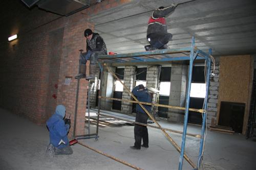 Отделочные работы активно ведутся и в помещениях будущего Музея истории евреев Украины и Холокоста. В большом конференц-зале, расположенном над помещениями постоянной экспозиции, начался монтаж большого амфитеатра.