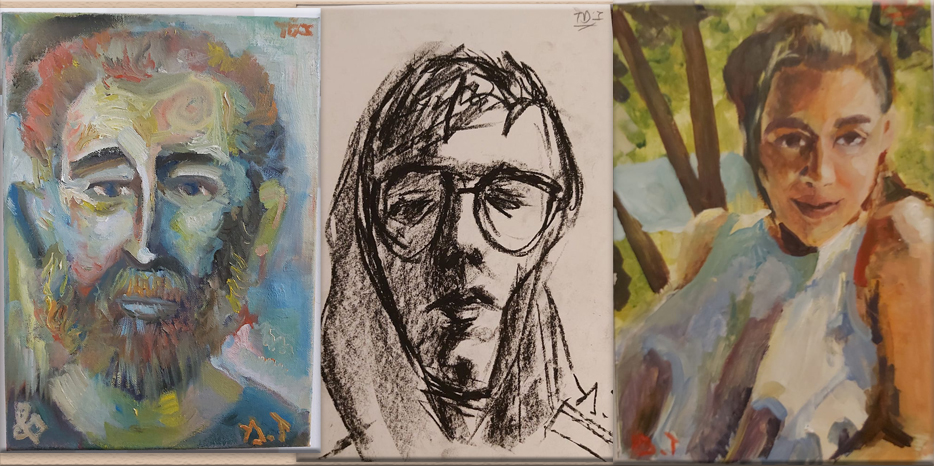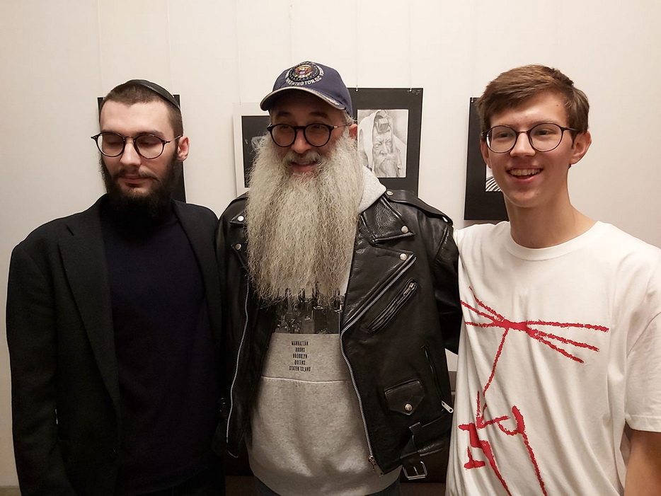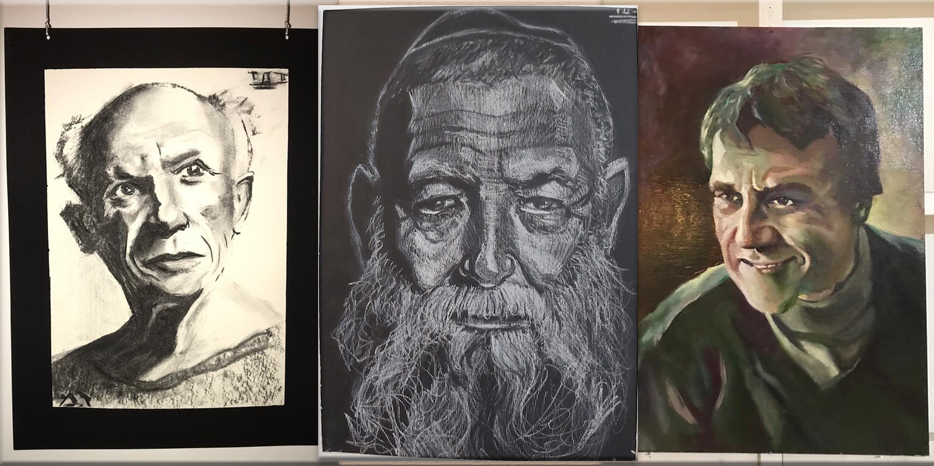 Спустившиеся с картин Пикассо и Высоцкий, казалось, были довольны – техника на уровне, схожесть налицо, плюс зритель принимает художника тепло, дружелюбно и с радостью. Аплодисменты были тому подтверждением. Было показано четыре, в разных техниках, портрета Любавического Ребе, было много интересных, живых персонажей. Нашим евреям было интересно увидеть знакомые лица – реб Шмуэля Гельба, учителя Давида художника Михаила Новака, брата Давида Йонатана Мальцева. Также на экспозиции был портрет друга Давида моушн-дизайнера Даниила Игната, ну и без автопортрета ж никак – было два.