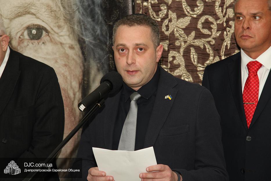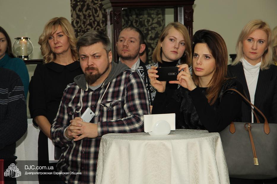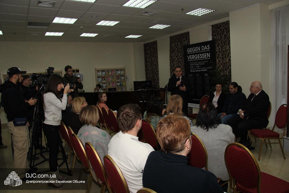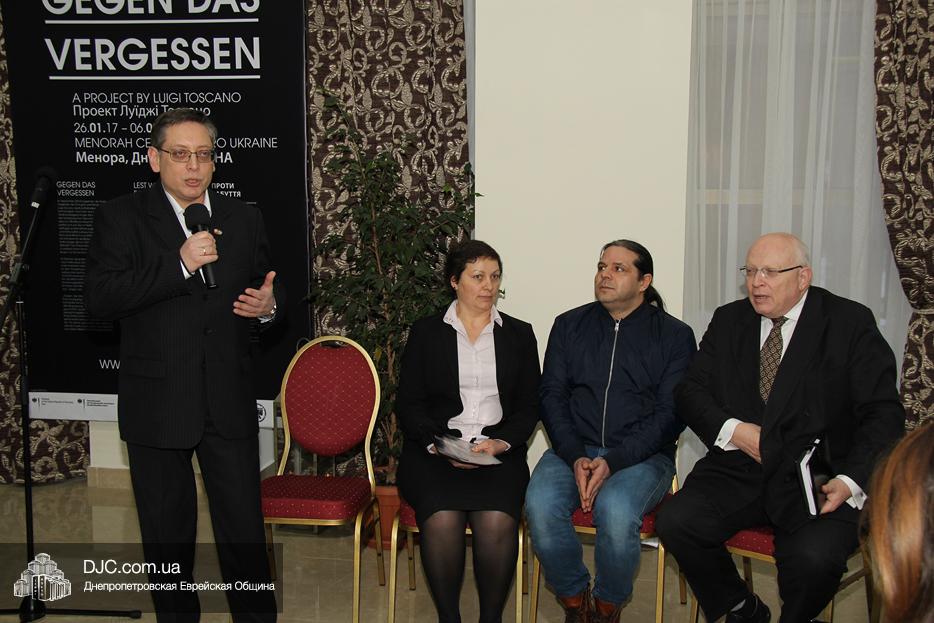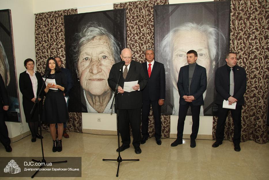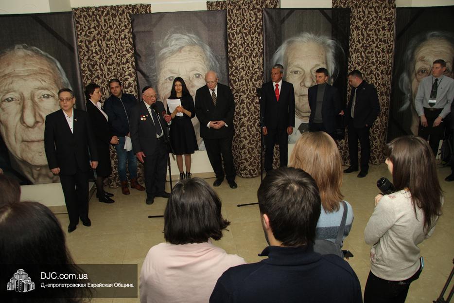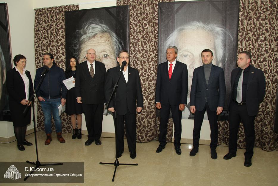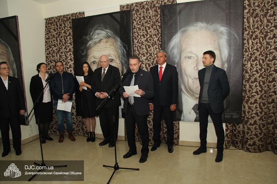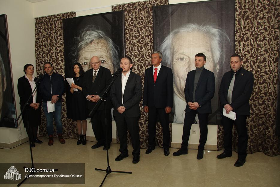 Участие в церемонии открытия выставки в Днепре, которая прошла в «Арт-галерее» центра «Менора», приняли: председатель Днепропетровского областного совета Глеб Прыгунов, первый заместитель председателя Днепропетровской облгосадминистрации Олег Кужман, генеральный консул Федеративной Республики Германия Вольфганг Мессингер, второй секретарь Посольства Государства Израиль в Украине, директор Израильского Культурного Центра в Днепре Вячеслав Смоткин, председатель правления «Джойнт» в Восточной Украине Йонатан Лейфер, председатель Совета евреев-ветеранов Днепра Соломон Флакс, директор УИИХ «Ткума» и музея «Память еврейского народа и Холокост в Украине» доктор Игорь Щупак, представители педагогической, исторической общественности, гражданские активисты и представители различных этноконфессиональных объединений.