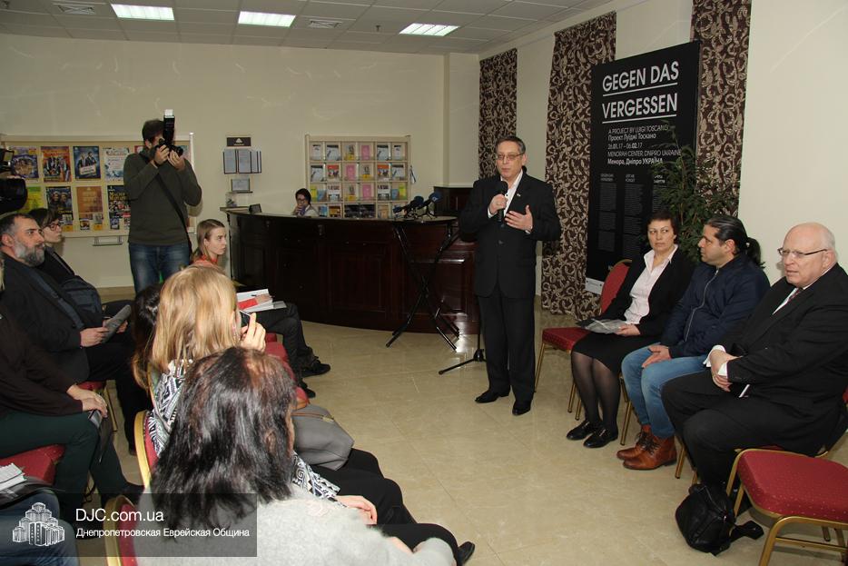На пресс-конференции общественность также была проинформирована, что это событие стало возможным благодаря проекту «Акция искупления ради мира», Генеральному консульству Федеративной Республики Германия, Украинскому институту изучения Холокоста «Ткума» и музею «Память еврейского народа и Холокост в Украине». Генеральный консул ФРГ Вольфганг Мессингер подчеркнул, что для немецкого правительства и народа Германии является принципиально важным участие в подобных проектах, и он очень ценит то сотрудничество, которое сложилось с еврейской общиной Днепра и ее институциями, а Луиджи Тоскано поведал, что кроме непосредственно фотографий в проекте делаются видеофильмы и другие формы увековечивания памяти, а работы этого проекта были задействованы в рамках церемоний, посвященных 75-летию трагедии Бабьего Яра в Киеве.