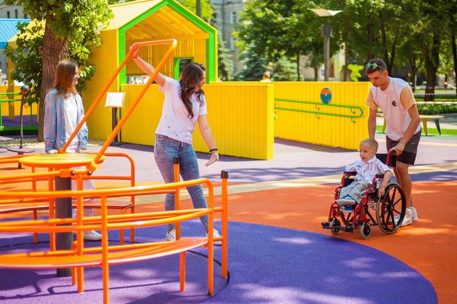 В центре Днепра в сквере Героев возле ДнепрОГА открыли первый в Украине уникальный инклюзивный парк, который построили с учетом потребностей особенных детей, и где продумали каждую деталь – от покрытия до игрушек. В этом парке дети не стеснены никакими барьерами и могут свободно кататься на качелях, передвигаться по лабиринтам, познавать мир с помощью сенсорных панелей. Открытие парка состоялось накануне Дня Конституции.