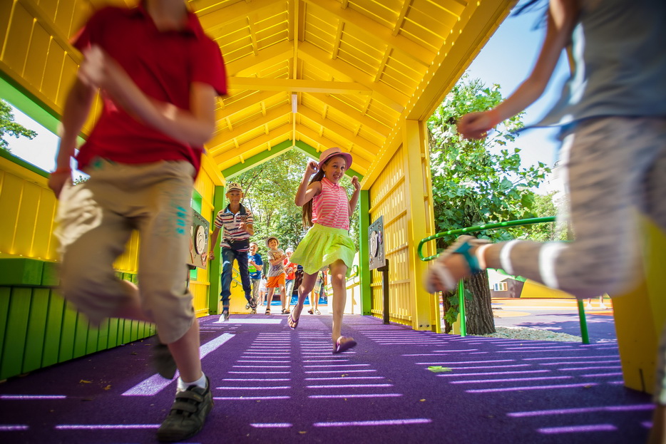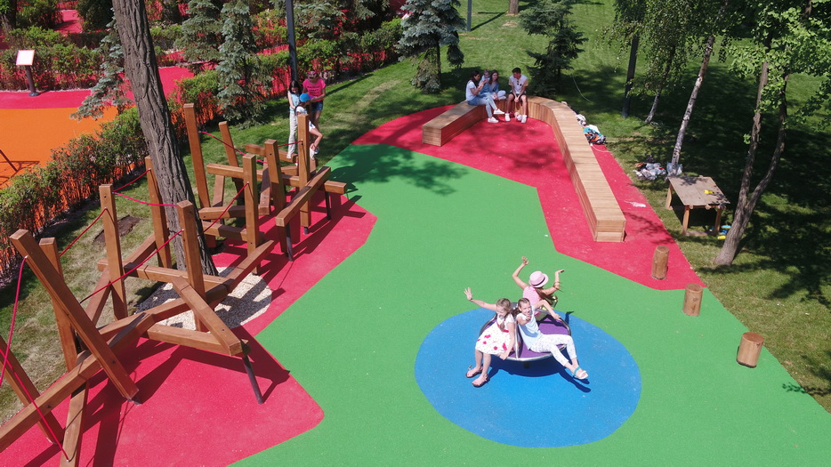Проект инклюзивного парка разработал днепровский архитектор Сергей Дербин. По его словам, парк вполне безопасен для игр и развлечений. Под ногами – покрытие из цветной крошки. Экологически чистая поверхность не скользит, упругая и мягкая, чтобы не травмироваться при внезапном падении. Тем, у кого слабое зрение, самостоятельно сориентироваться помогает тактильная плитка. Благодаря ей маршрут удобный и безвредный.