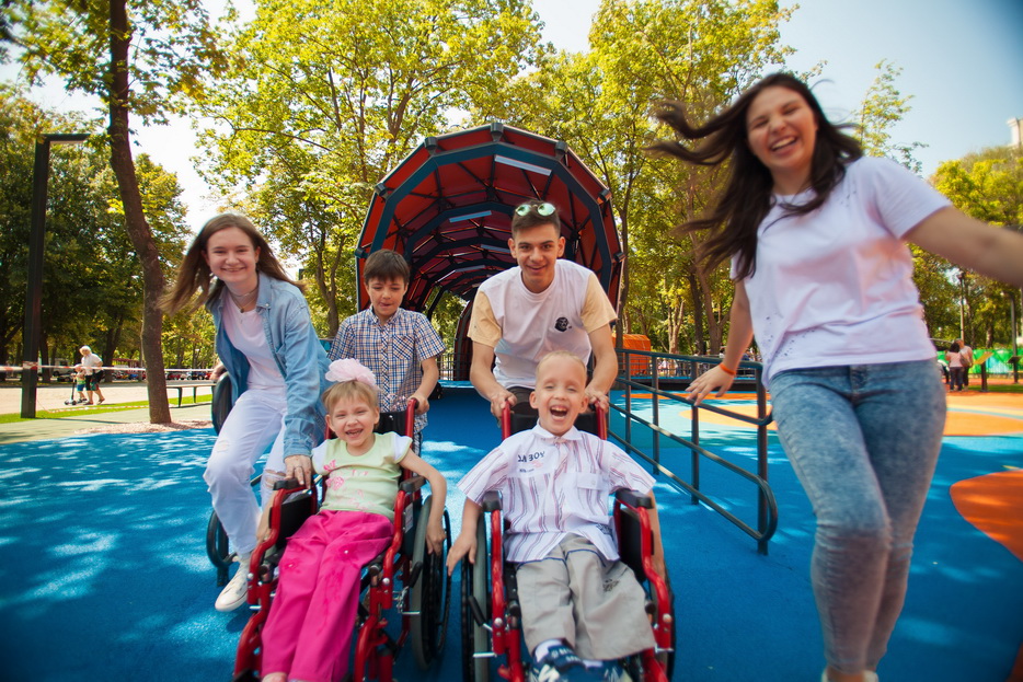 Пресс-служба Облгосадминистрации так рассказывает об инклюзивном парке: «В парке, который возле ДнепрОГА, множество эмоций вызывает усадьба «Ранчо». Внутри яркого домика – сенсорные панели. Нажав на кнопку, получаешь задание на английском и выполняешь аудиокоманды. Такие интерактивные игрушки – для развития мышления, внимания и логики. Есть где разгуляться в «Оранжевом тоннеле». Для путешествия – целых 25 метров. Игрушки здесь смонтированы на удобной высоте, реагируют на прикосновения и отзываются на украинском языке. Проверить себя малыш может в зеленом лабиринте. Головоломка не обычная, а из кустов спиреи. Дорожки такой ширины, что без труда может проехать инвалидная коляска. Далее на пути – экологическая площадка, где преобладают игровые элементы из дерева. Здесь для детского досуга – качеля-гнездо, разноуровневая песочница, музыкальные инструменты. Заветные желания разрешено рисовать на площадке мечтаний. Кроме того, в парке можно покататься с друзьями или родителями на качелях равных возможностей, проехаться на карусели, сыграть в необычный баскетбол. Для семейного отдыха – столы со скамейками. За ними комфортно даже тем, кто в инвалидной коляске».