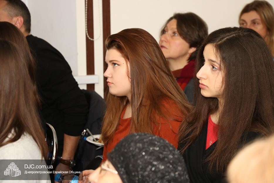 Вначале встречи ведущая Мирьям Гольденберг напомнила о том, что Днепр имеет особое отношение к Свадьбе Ребе – ибо родители Ребе раби Леви-Ицхак Шнеерсон и его супруга Хана, которых советский режим не выпустил на свадьбу сына, устроили здесь свадебное торжество, которое проходило одновременно со Свадьбой Ребе в Варшаве. Сотни и тысячи евреев веселились в тот день 14 кислева 5689 года (1928), а сегодня во всем мире отмечают 91-ю годовщину этого столь значимого события.