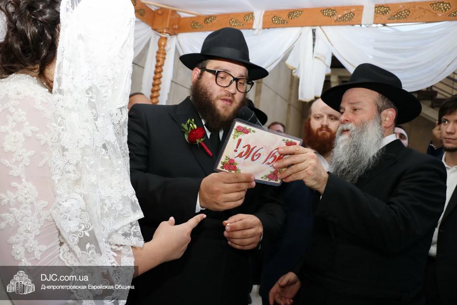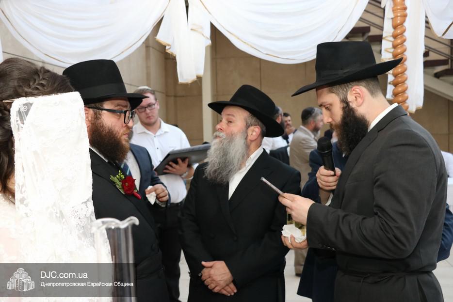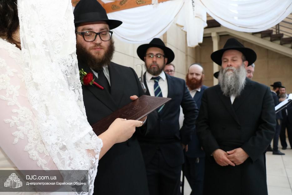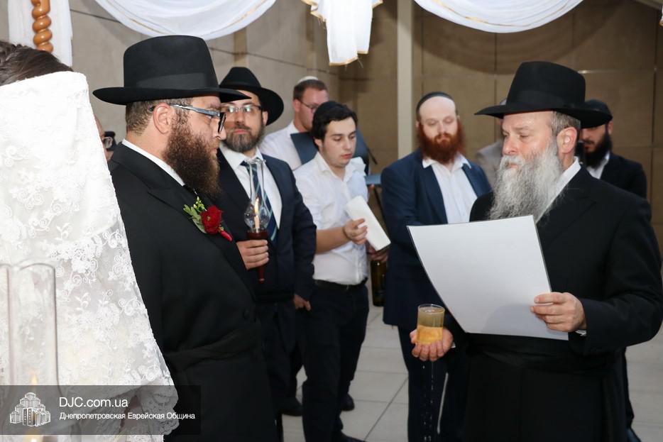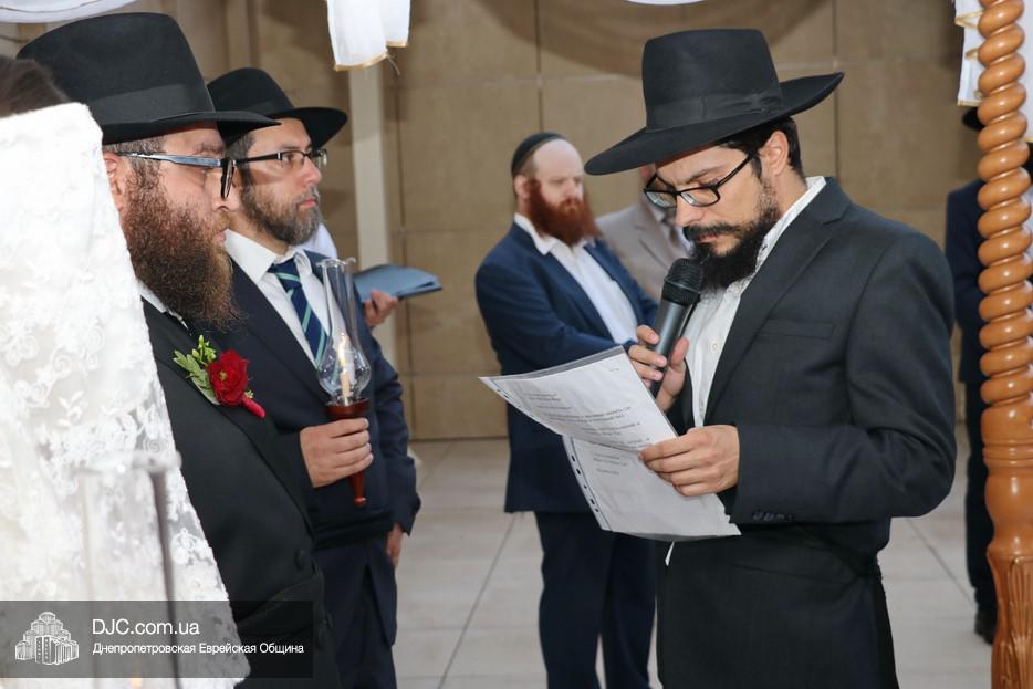 Честь прочитать текст брачного договора – ктубы, была предоставлена секретарю раввинского суда Аврааму Иосифу Ицхаку Каршенбауму, а семь свадебных благословений прочли уважаемые лидеры еврейской общины Днепра, родственники и друзья молодоженов.