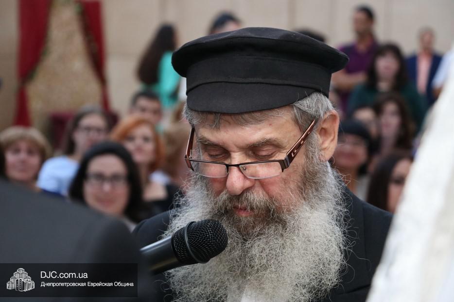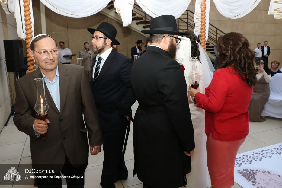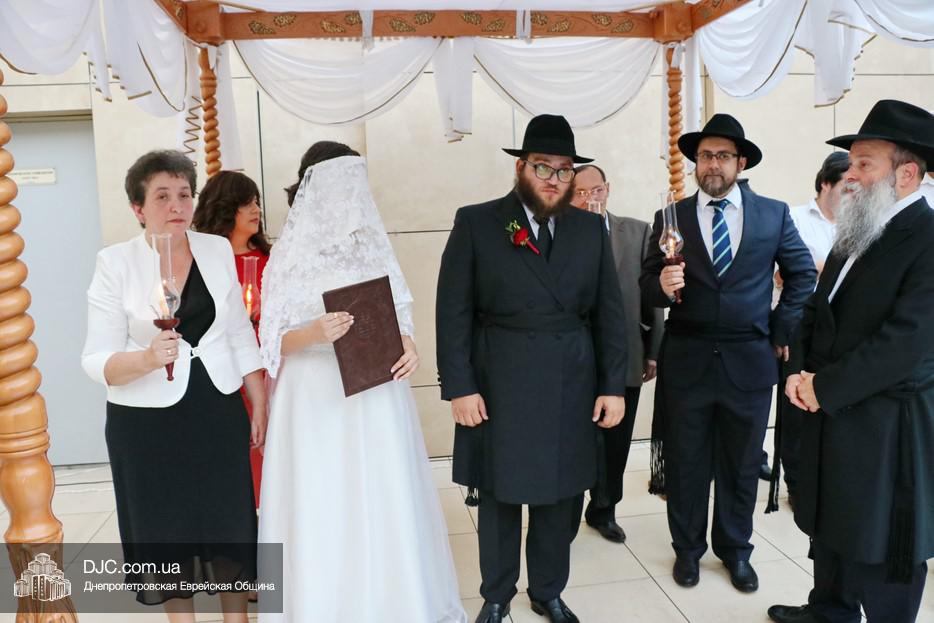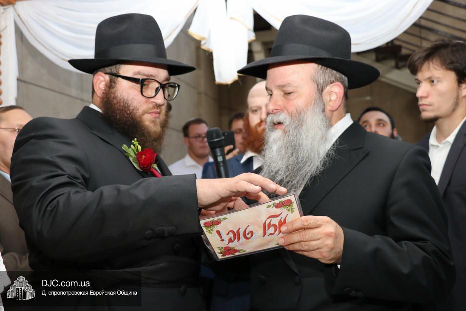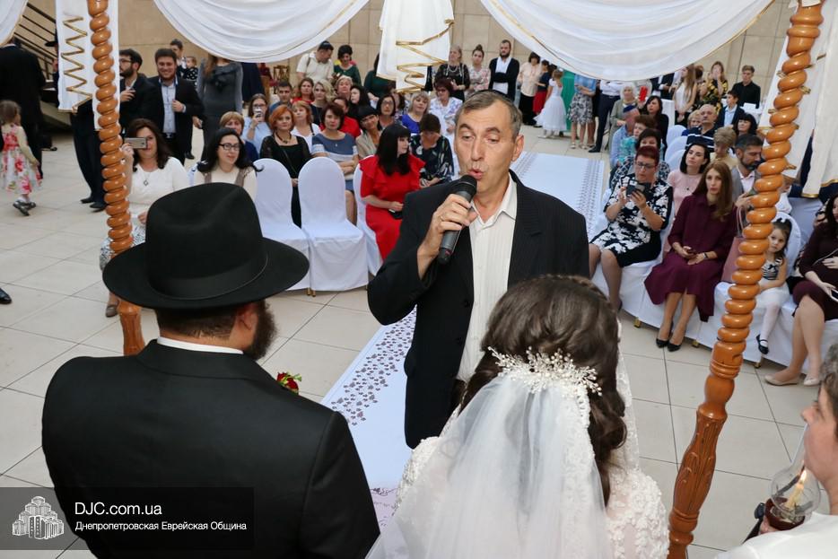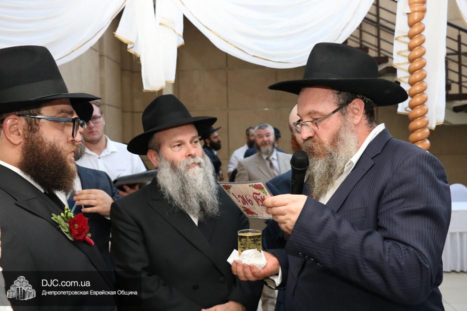 Честь прочитать текст брачного договора – ктубы, была предоставлена секретарю раввинского суда Аврааму Иосифу Ицхаку Каршенбауму, а семь свадебных благословений прочли уважаемые лидеры еврейской общины Днепра, родственники и друзья молодоженов.