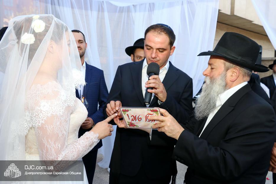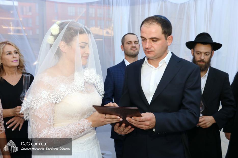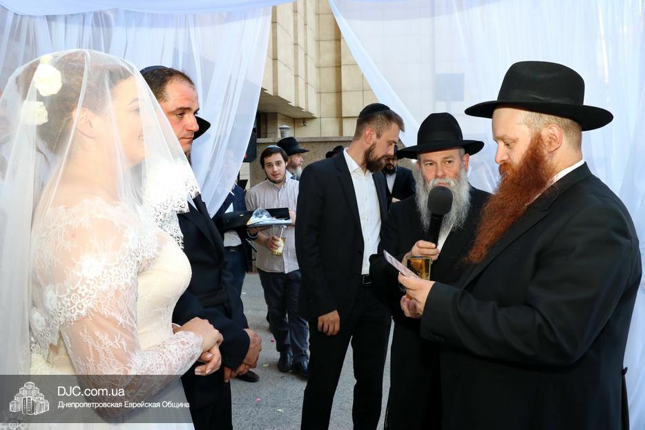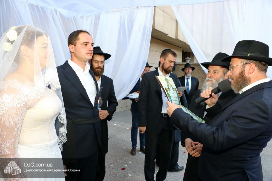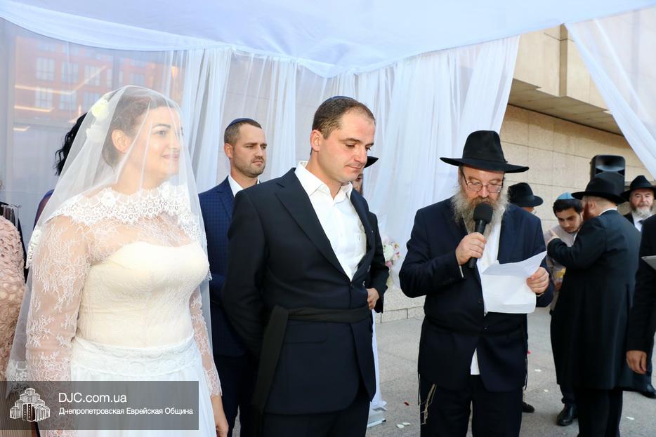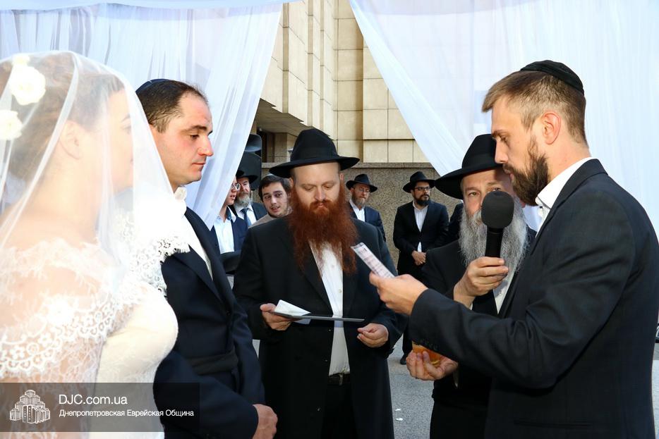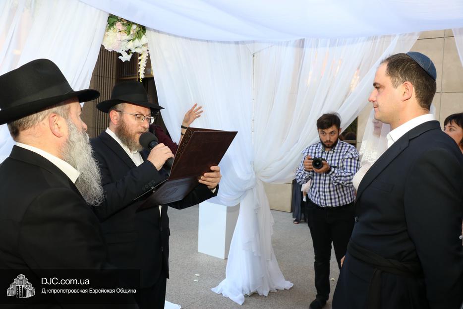 Честь прочитать текст брачного договора – Ктубы – была предоставлена раввину Мойше Лейб Веберу, а семь свадебных благословений прочли уважаемые лидеры еврейской общины Днепра, родственники и друзья молодоженов.