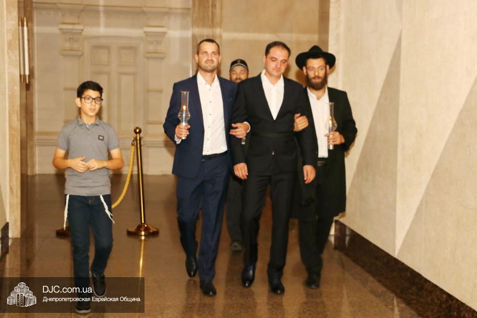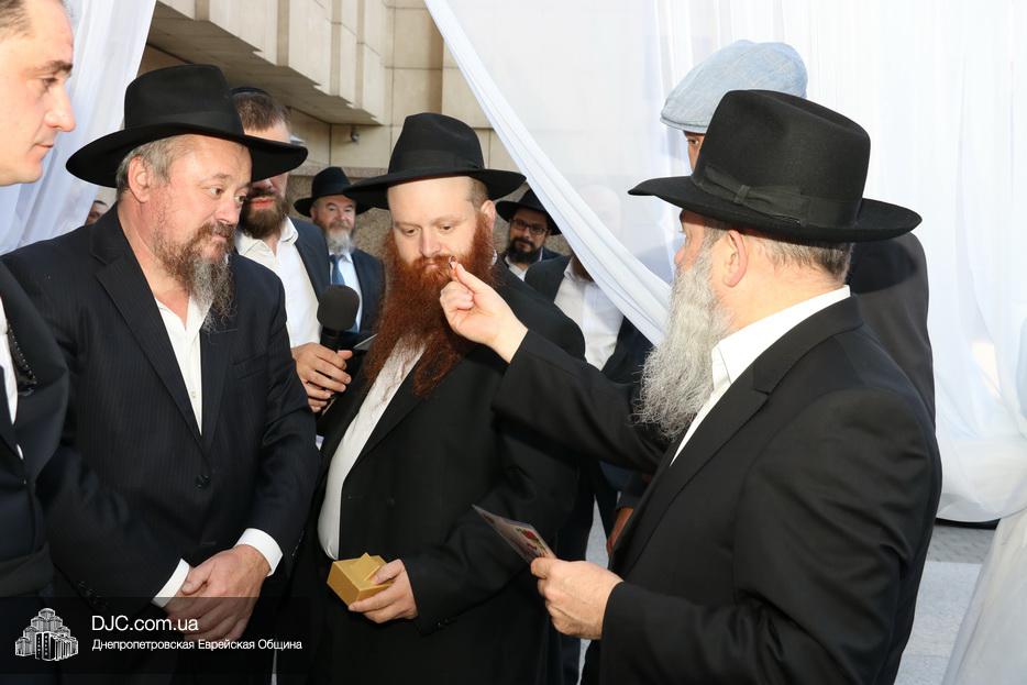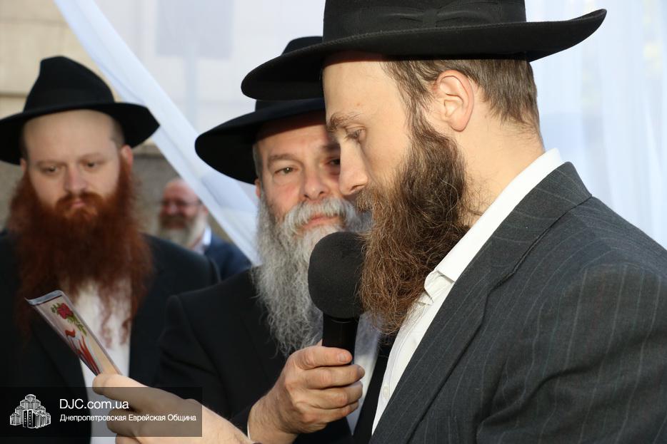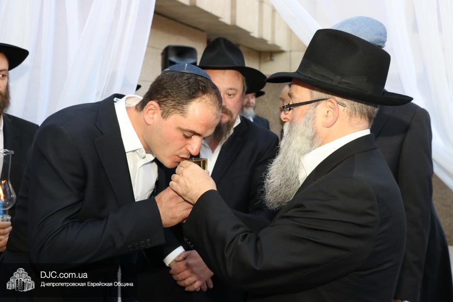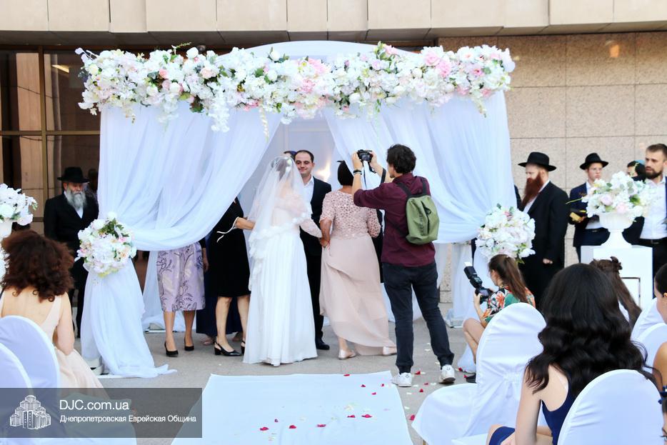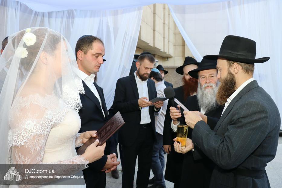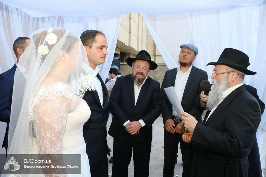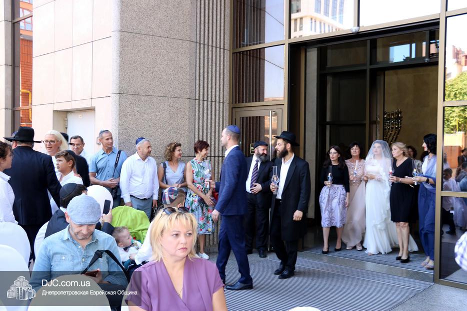 Честь прочитать текст брачного договора – Ктубы – была предоставлена раввину Мойше Лейб Веберу, а семь свадебных благословений прочли уважаемые лидеры еврейской общины Днепра, родственники и друзья молодоженов.