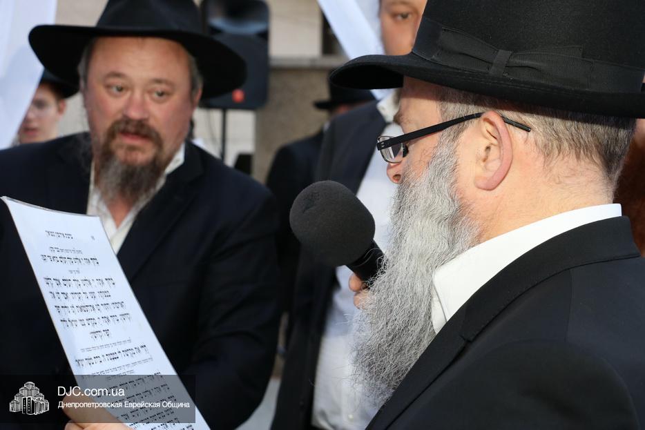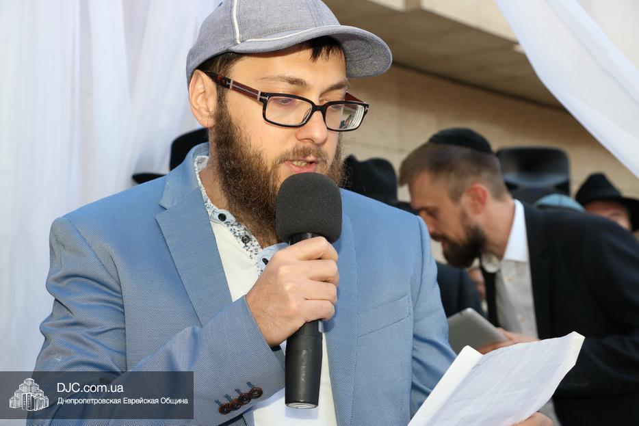 Свадебный гимн «Ми Адир» исполнил солист Днепровского театра оперы и балета Игорь Бабенко, письмо-благословение Любавического Ребе Менахема-Мендела Шнеерсона на иврите прочел Рош иешива-ктана раввин Реувен Чупин, а его перевод на русский язык – Даниэль Радиновский.