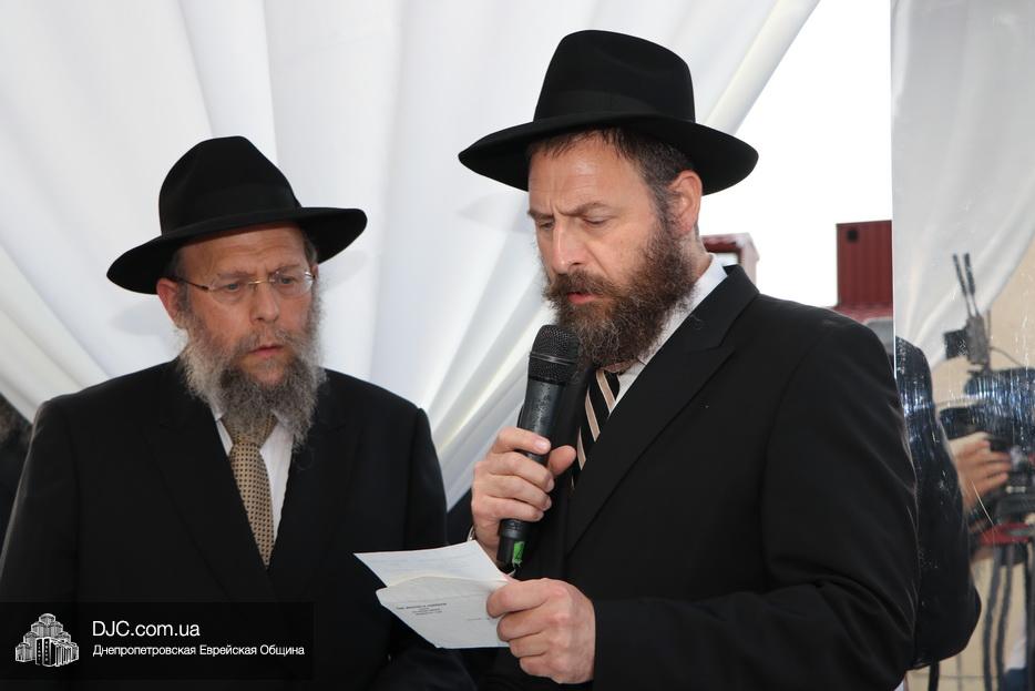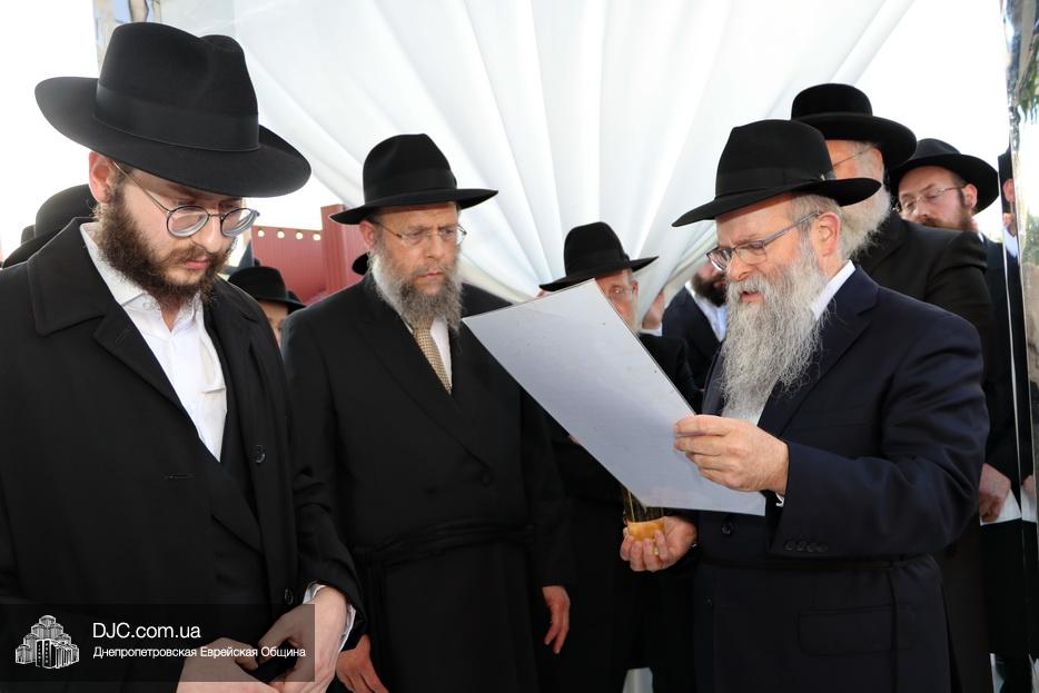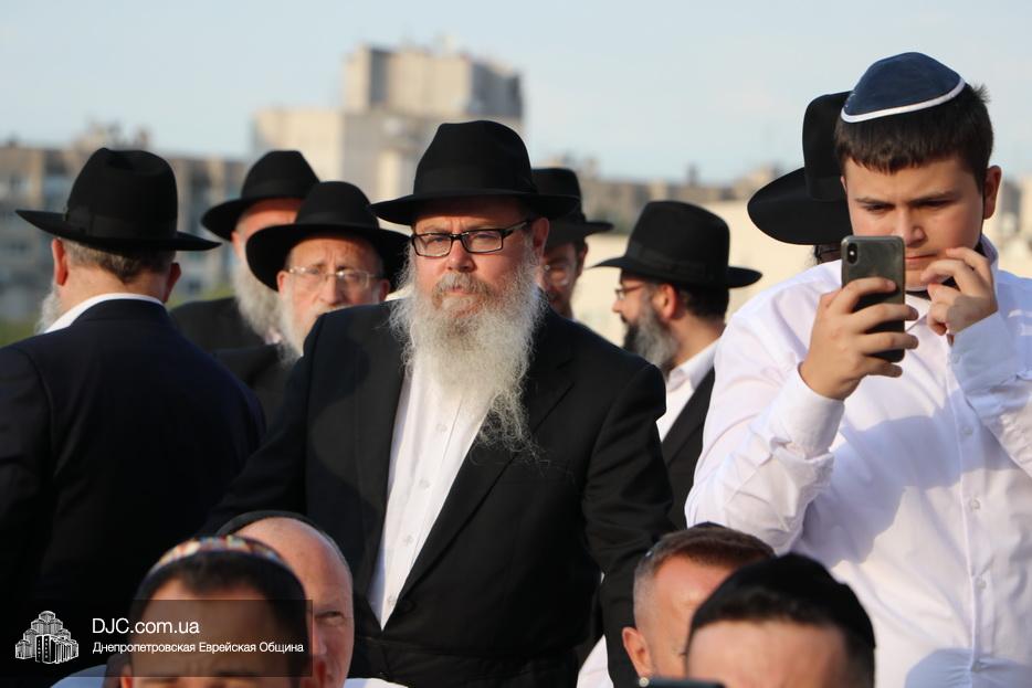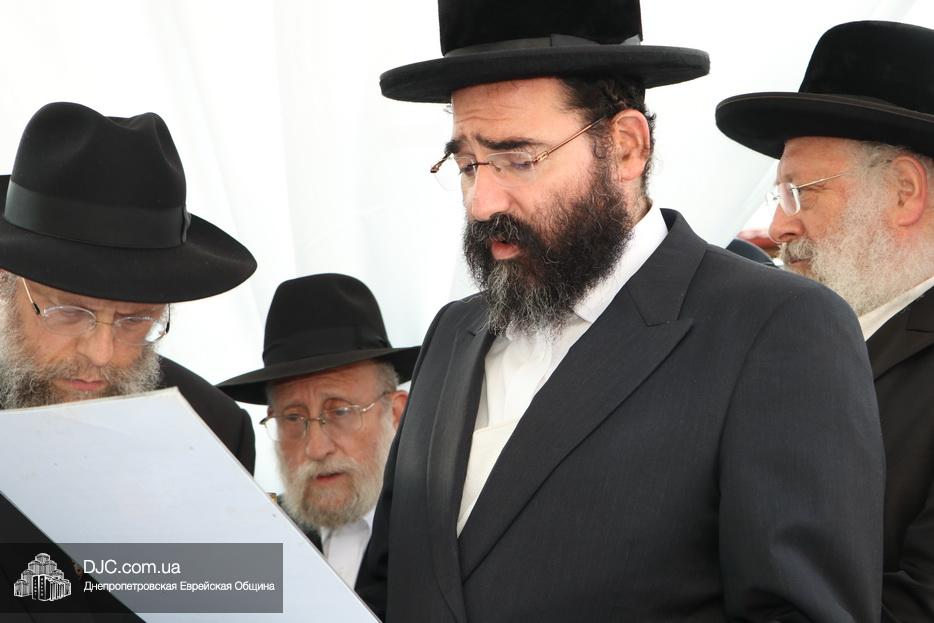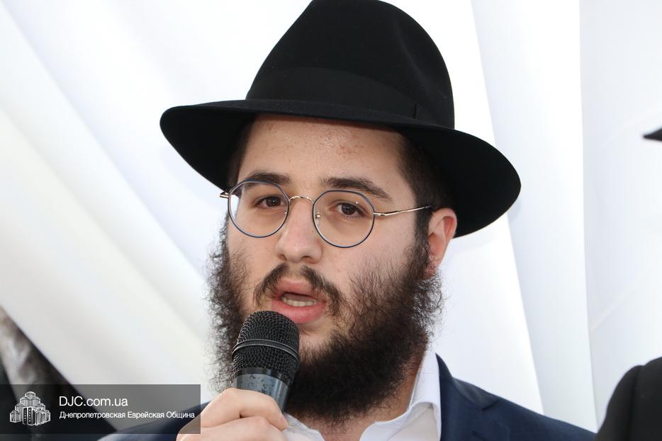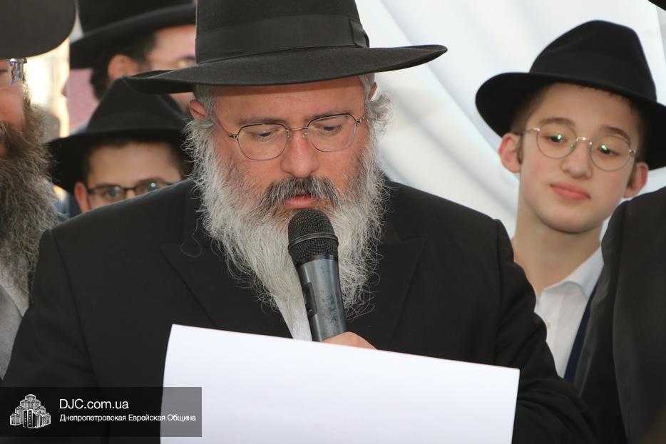 Затем прозвучали семь свадебных благословений: первые два прочел раввин Элиягу Столик (Бруклин, Нью-Йорк); третье – дядя невесты раввин Аарон Саломон (Кирьят Малахи, Израиль); четвертое благословение прочел дядя жениха раввин Йосеф Ланда (Лондон, Великобритания); пятое – дядя невесты раввин Биньомин Аксельрод (Петах Тиква, Израиль); а шестое – дядя жениха раввин Натан Винклер (Бней Брак, Израиль). Седьмое, заключительное благословение произнес Главный раввин Днепра и региона Шмуэль Каминецкий.