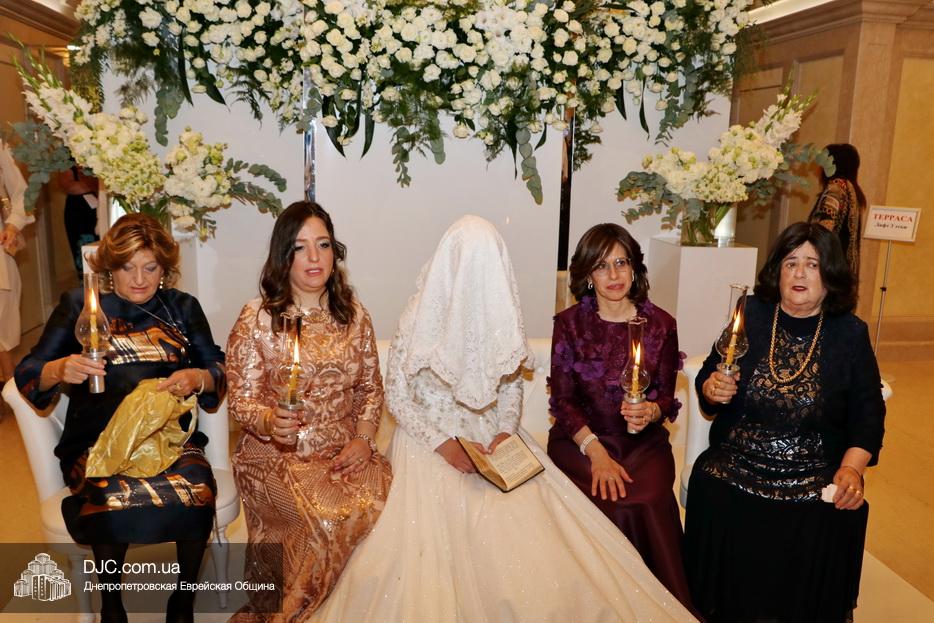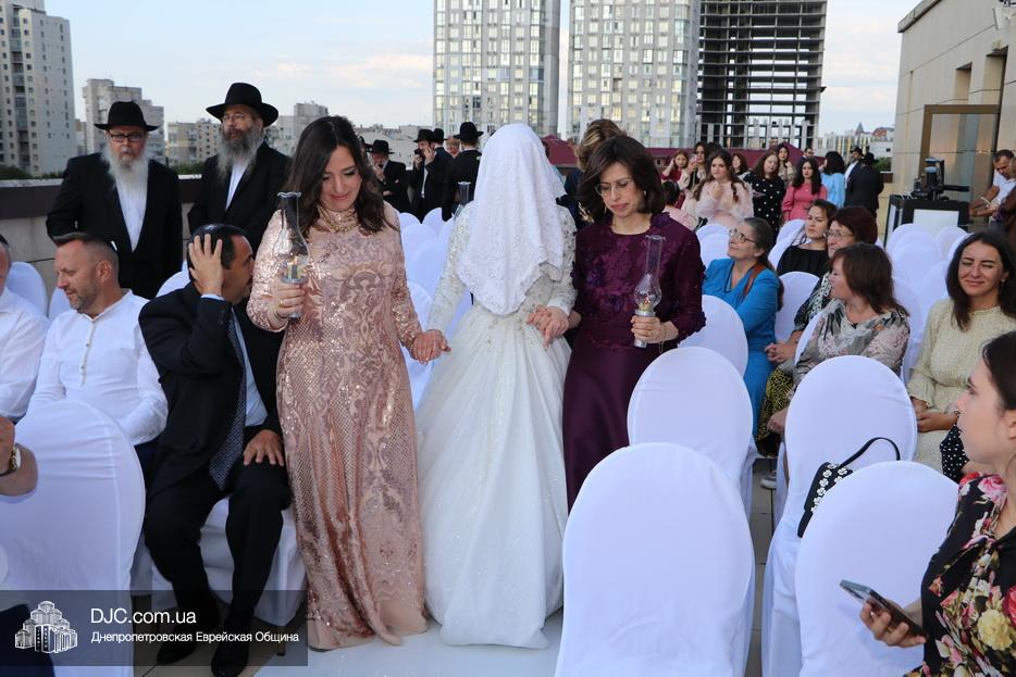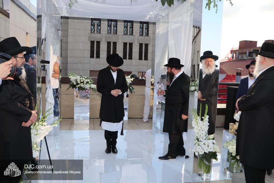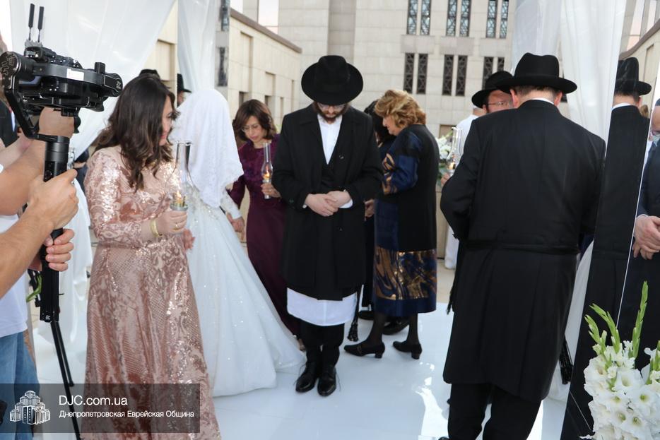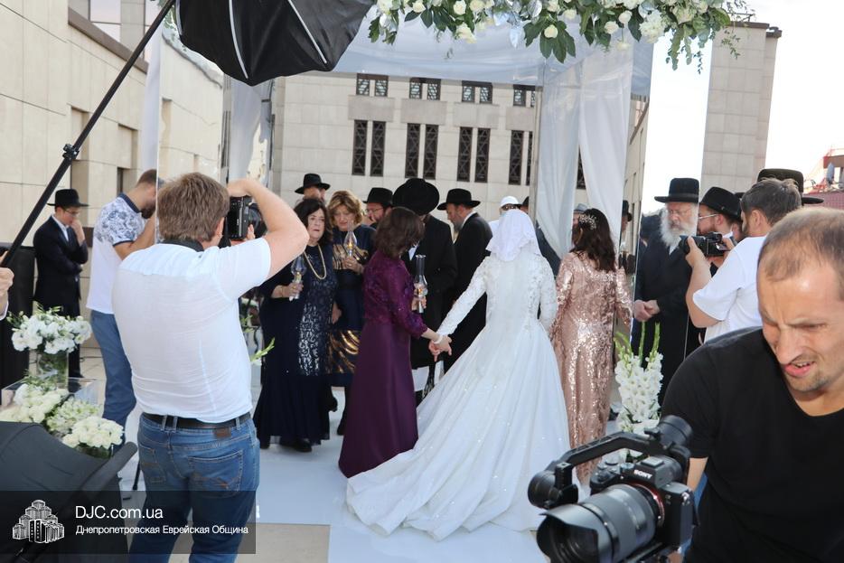 Хупа была установлена на крыше «Menorah Grand Palace» и жениха подвели под свадебный балдахин, куда, затем, привели невесту, которая, с сопровождающими семь раз обошла вокруг жениха.