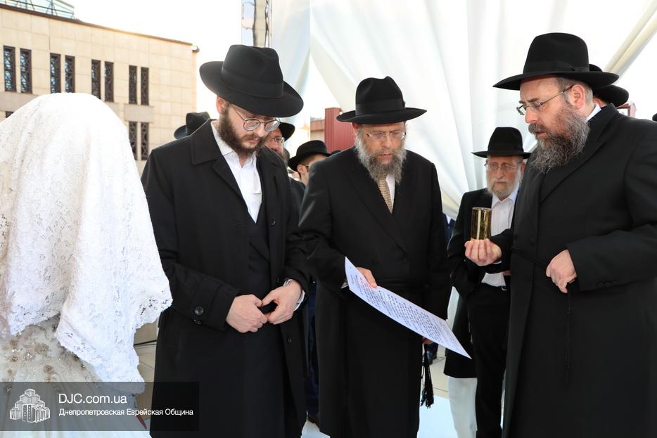 Так, вчера в Днепре состоялась церемония «Хупа веКидушин», брачного обряда по еврейскому закону, Ривки Аксельрод, дочери Главного раввина Черкасс Дова Аксельрода и его супруги Ханы (Украина), и Якова Ланда, сына Главы «Бейт ХаБаДа для ивритоговорящих» раввина Исроэль Ланда и его супруги Рахель (Торонто, Канада).