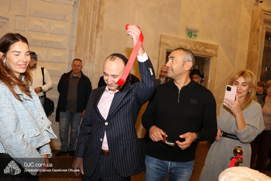 Кульминацией праздника стала торжественная церемония перерезания красной ленточки, которую провели Шломо Черток и его супруга Наоми вместе с Игалем Роговым и его супругой Голдой. А затем меценаты открыли цдаку и памятную доску в Галерее крупнейшего в мире еврейского центра «Менора».