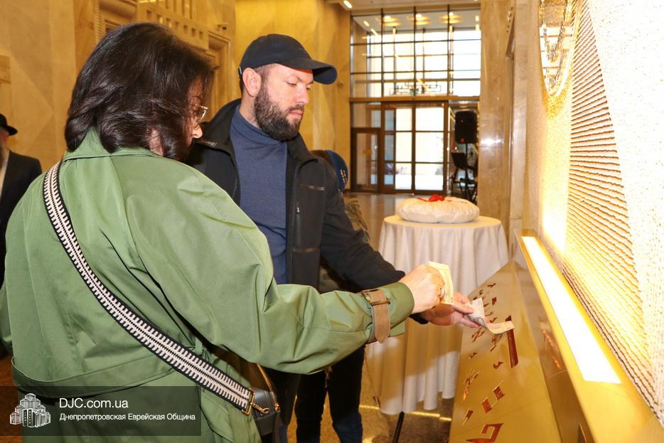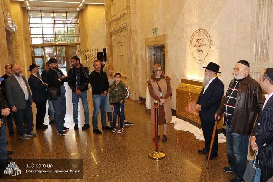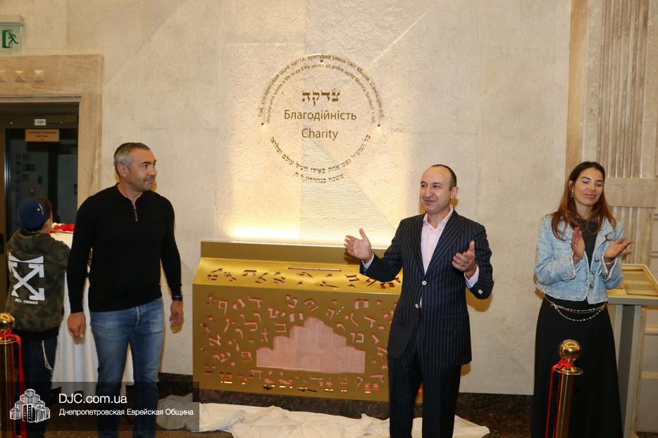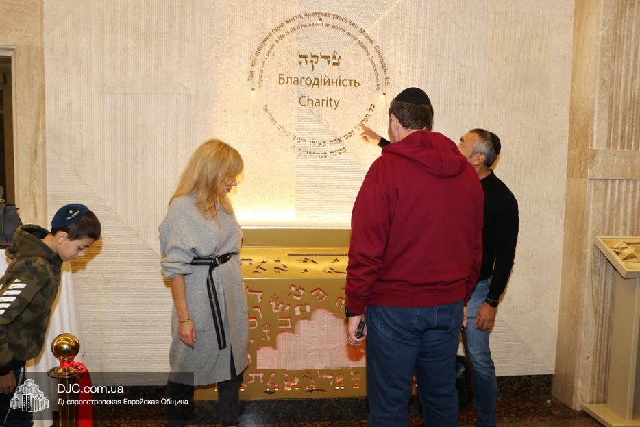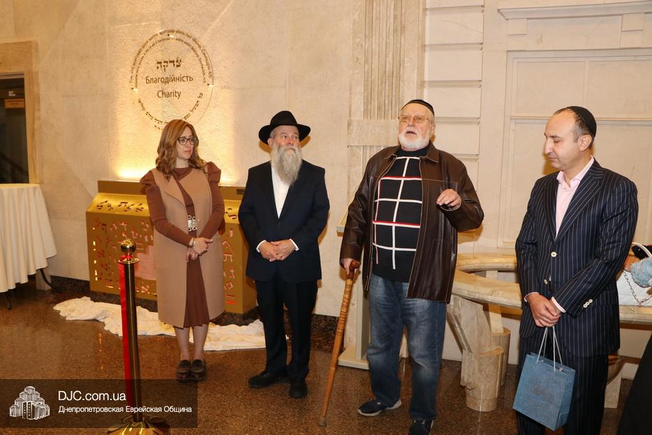 Открыл торжественную церемонию Главный раввин Днепра и региона Шмуэль Каминецкий, рассказав об одной из важнейших заповедей «цдака» и о символичности открытия этой уникальной цдочницы именно 25 элула, в день, когда Вс-вышний сотворил этот мир. Он от всего сердца поблагодарил семьи Черток и Роговых, по инициативе которых в Галерее еврейской центра «Менора» теперь находится такая красивая цдака. Перед собравшимися на эту торжественную церемонию выступили меценаты проекта – член Попечительского Совета Шломо Черток и член Попечительского Совета Игаль Роговой, а также управляющий делами еврейской религиозной общины Александр Абрамович Фридкис.