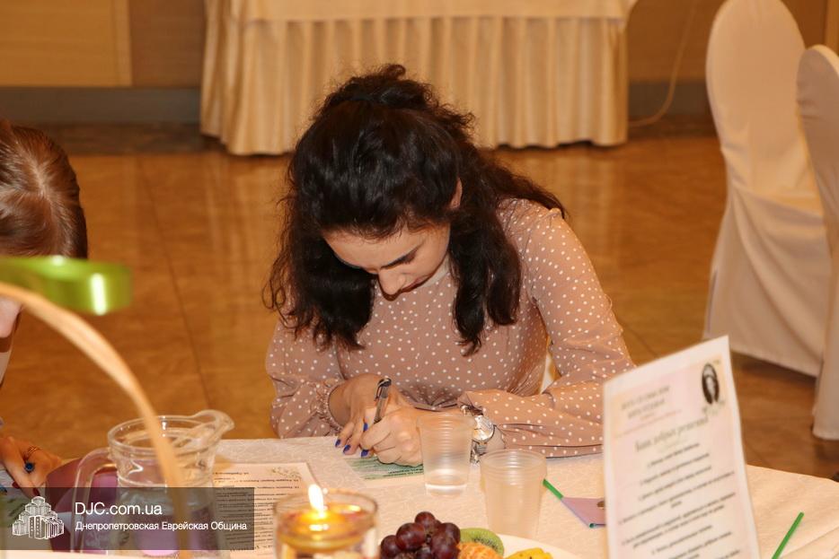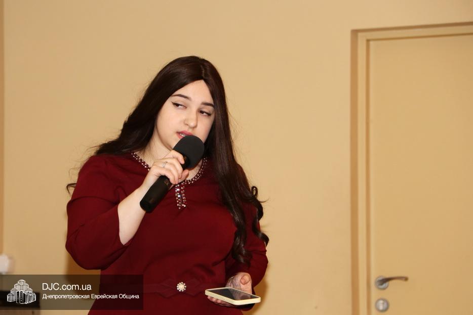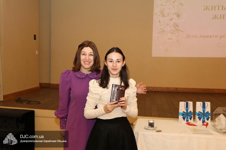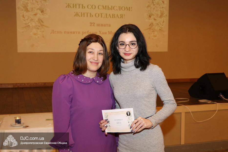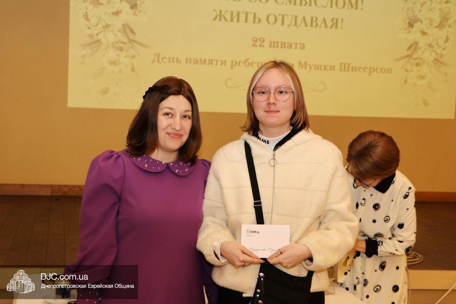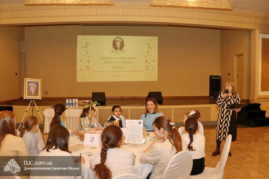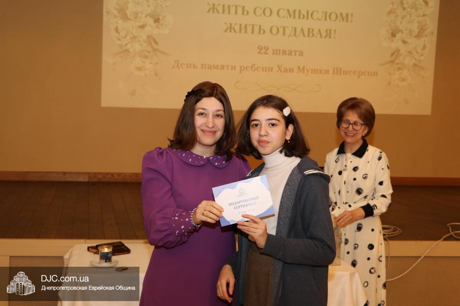 Мероприятие, подготовленное аморой Шейной Смилянской и аморой Мирьям Терешкевич, получило название «Жить со смыслом! Жить отдавая!» и было наполнено глубоким духовным содержанием. Свечу памяти в честь великой праведницы ребецн Хаи-Мушки Шнеерсон зажгла директор еврейской школы Днепра Елена Леонидовна Краснова.