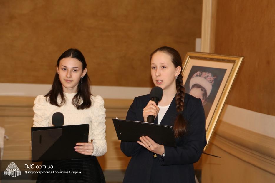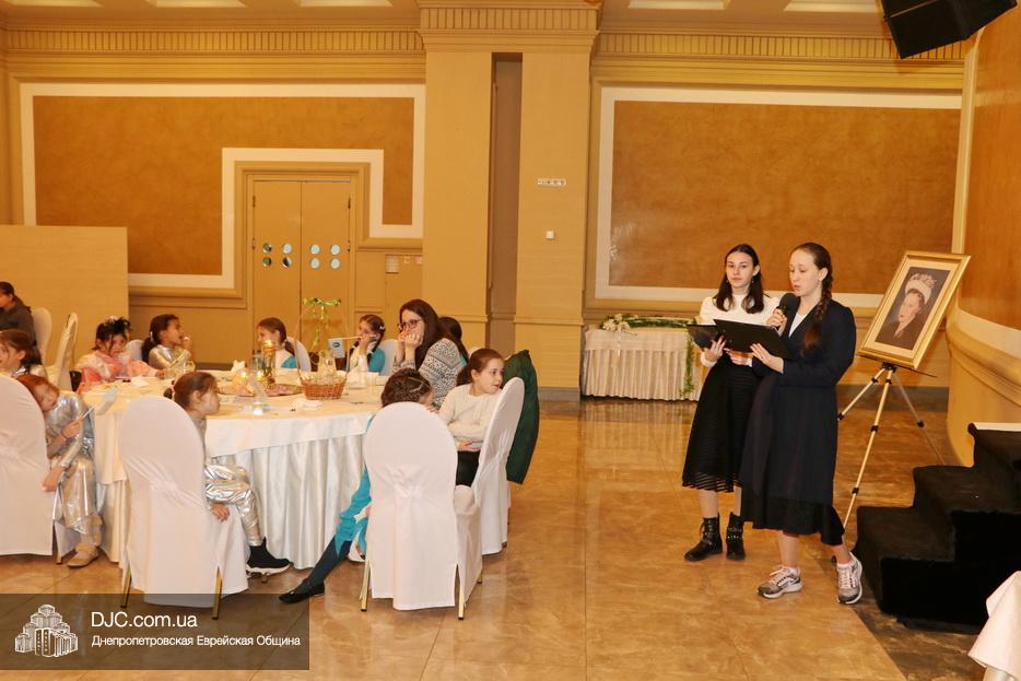 Для еврейских школьниц и студенток общин Днепра и Каменского состоялся банкет в ознаменование 35-ой годовщины исталкут праведной ребецн Хаи-Мушки Шнеерсон, супруги Главы нашего поколения, Седьмого Любавического Ребе Менахема-Мендела Шнеерсона, и дочери Предыдущего Ребе, Иосифа-Ицхака Шнеерсона, который прошел в зале торжеств «Menorah Ballroom» крупнейшего в мире еврейского центра «Менора».