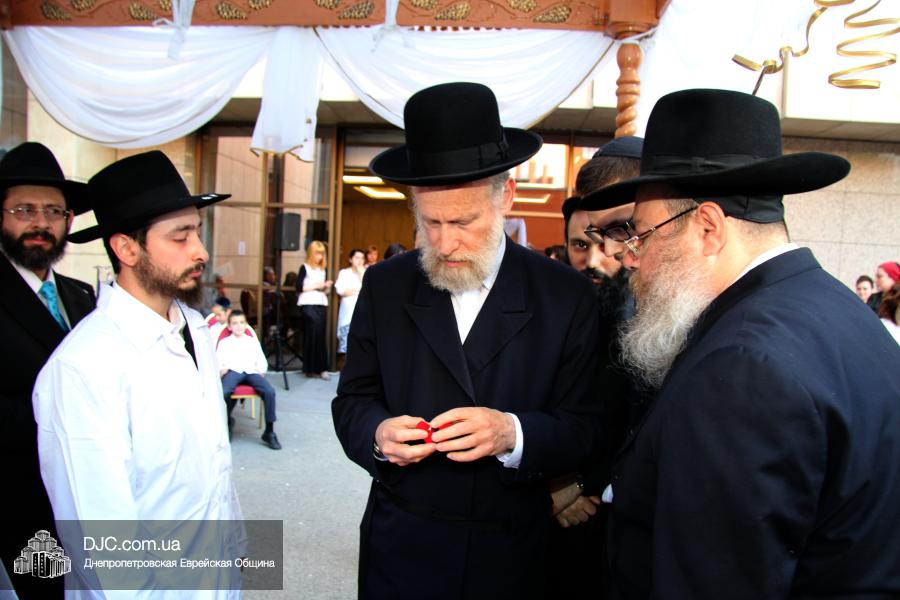 После прочтения Ктубы – брачного договора – раввином Иосифом Ханохом га-Когеном Бродбекером, прозвучали Шева-Брахот, семь свадебных благословений, произнесенные уважаемыми членами еврейской общины Донецка и Днепропетровска.