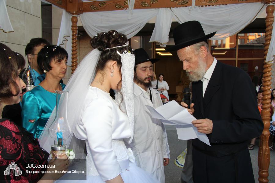 В Днепропетровске прошла церемония еврейского бракосочетания – Хупы для Ханы Ривки Воскобойниковой и Арье Лейба Вирина. Церемония проходила в крупнейшем в мире еврейском центре «Менора». Невеста – выпускница Международного гуманитарно-педагогического института «Бейт Хана», а жених родом из Донецка, сейчас учится в Иерусалиме.