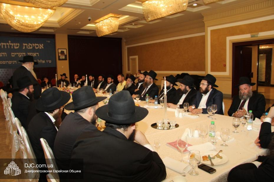 Раввины, прибывшие в Днепропетровск по приглашению Главного раввина Днепропетровска и Днепропетровского региона Шмуэля Каминецкого, обсудили широкий круг вопросов, в том числе и связанных с сохранением образовательных программ и программ общинной деятельности в условиях непростого экономического положения. Раввин Котлярский провел индивидуальные встречи с каждым раввином, а затем состоялся общий фарбренген в зале «Menorah Ballroom».