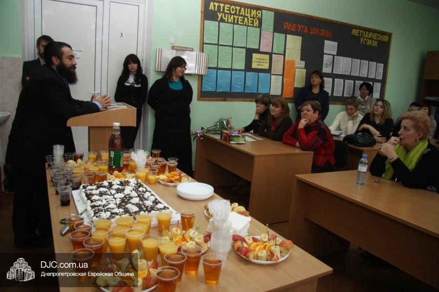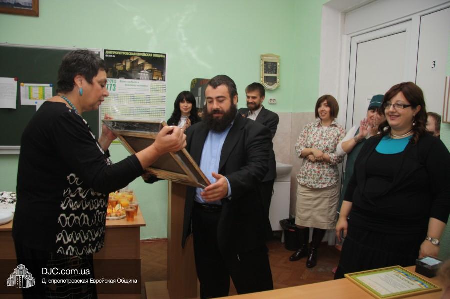 «Я хочу выразить свою глубокую благодарность всему коллективу школы, – сказал Меир Островский, – было сделано очень немало — Шабатоны, праздники, различные мероприятия и программы, фильмы и творческие проекты. За годы работы в Днепропетровске моя супруга Эстер написала или была соавтором более шестидесяти книг и учебных пособий. Мы инициировали множество образовательных проектов, которые были весьма успешны. Я надеюсь, что мой преемник, Шломо Терешкевич, продолжит и разовьет начатую нами работу».