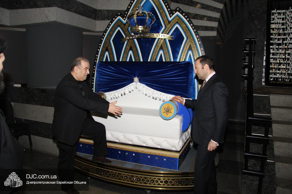 «Я считаю, что это событие впоєне можно назвать эпохальным для нашей общины, – сказал Зелик Брез, директор Днепропетровской еврейской общины, – ведь синагога – это малый Храм и все что в ней есть, может быть, уподоблено храмовой утвари, которую предписано делать с особым великолепием и тщанием. Не случайно кресло было открыто в субботу главы Трума, где рассказывается о важности отделки временного храма Мешкана, а в Гафторе этой главы мы читаем как величайший царь в истории человечества – царь Соломон лично занимался всеми приготовлениями, всеми деталями при постройке Храма. Я знаю, сколько времени, энергии, сил потратил Станислав Рубенович, чтобы создать это кресло, какое огромное внимание он уделял каждой детали, каждому элементу, ибо это кресло, которое он назвал «Креслом Мира», будет прославлять Вс-вышнего и Его Святое Имя, нашу общину и служить для исполнения заповедей. На нем будут не только совершаться обрезания, это также будет кресло для невесты, и для тех людей, которых община чествует».