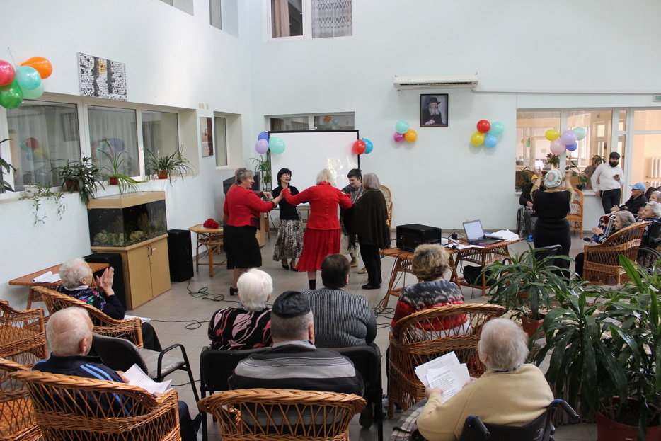 Для пожилых людей, благодаря Еврейской общине Днепра, было проведено специальное мероприятие – в зимнем саду прошел концерт песен той эпохи, жильцов тепло поздравили директор Дома пани Мальвина Рувинская и раввин «Бейт Барух» Леви Артюшкин, а затем каждому жильцу были вручены цветы, включая и тех, кто, по состоянию здоровья, не выходят из своих комнат.