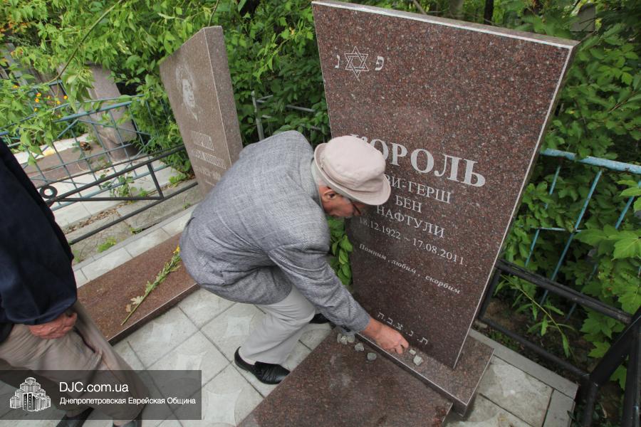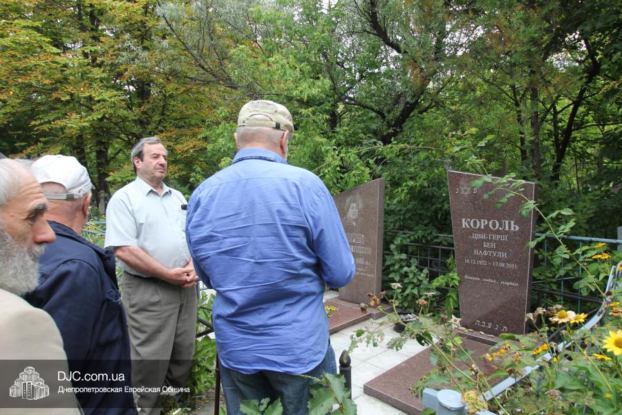 После окончания трапезы делегация прихожан еврейской общины выехала на могилу реб Гирш Короля, где прошла траурная церемония. Александр Абрамович Фридкис прочел поминальные молитвы «Кадиш» и «Эль моле рахамим», а все прибывшие вместе с ним на кладбище почтили память Григория Натановича, возложив, как и полагается по еврейской традиции, камни к подножию памятника, воздвигнутого на могиле реб Гирш Короля к первой годовщине ухода его души из физического мира.
