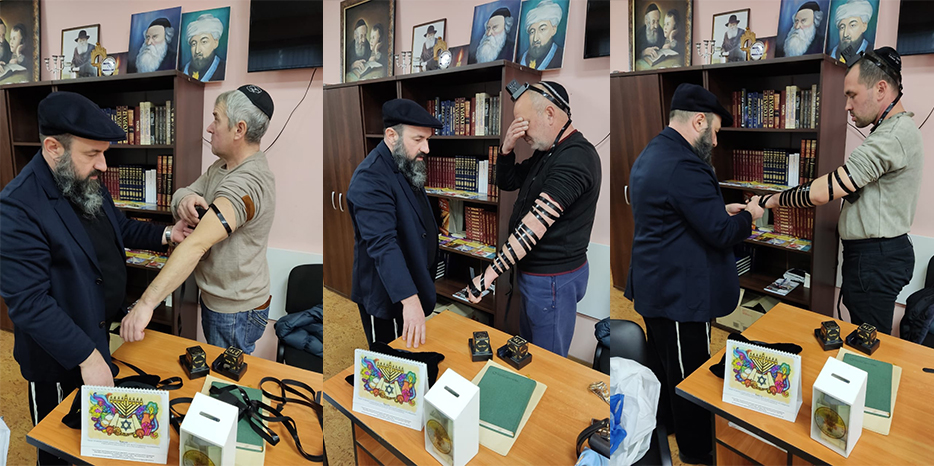 «В начале нашей встречи мужчины выполнили заповедь о тфилин, – рассказал нашему сайту раввин еврейской общины Новомосковска реб Залман Шикула, – прошел урок по недельной главе Торы, ведь Тора помогает в формировании мировоззрения человека, указывая на важнейшие принципы, в соответствии с которыми он должен жить.