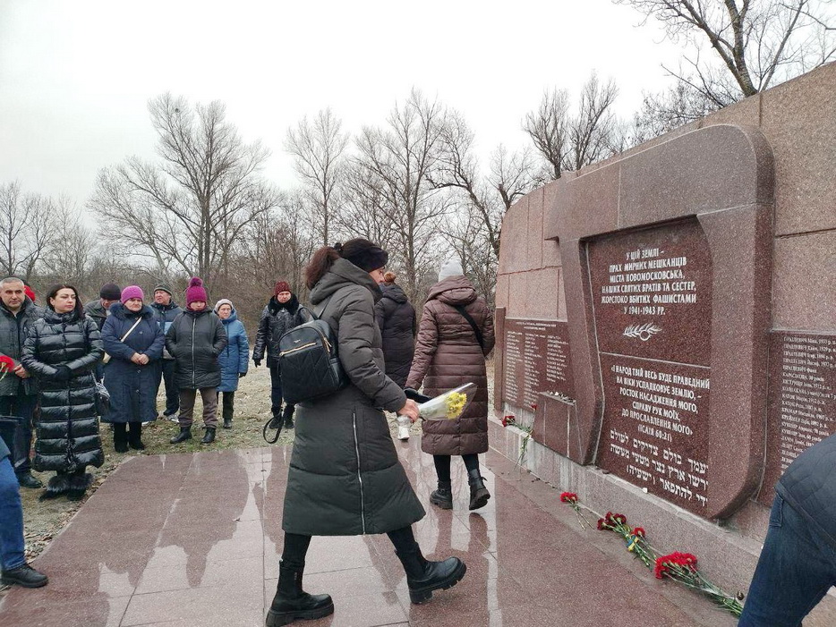 В Международный День памяти жертв Холокоста в еврейской общине Новомосковска прошла церемония памяти возле мемориала «Помним ради будущего» жертвам геноцида – мирным жителям Новомосковского района, расстрелянным фашистами в 1941-43 гг.», находящегося на выезде из города в направлении села Орловщина.