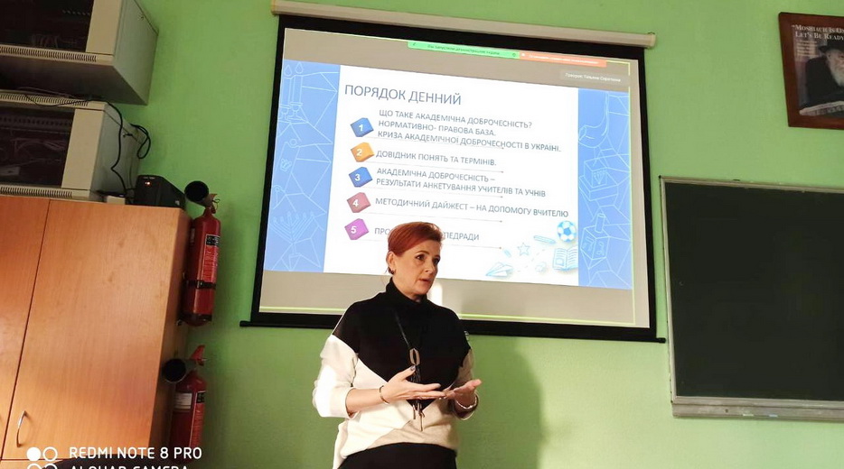 Тому педагоги нашої школи на педраді шукали відповіді на такі питання: Як уникнути плагіату та самоплогіату? Що таке інтелектуальна власність та авторські права, фабрикація та фальсифікація, чим загрожує списування та необ’єктивне оцінювання? Як ці поняття донести учням і виховати їх академічно доброчесними людьми, здатними поважати працю людей і не зазіхати на чужу інтелектуальну власність? Як навчити учнів користувалися літературними та інтернет-джерелами, правильно цитувати та оформлювати роботи з дотриманням всіх норм і вимог законодавства?