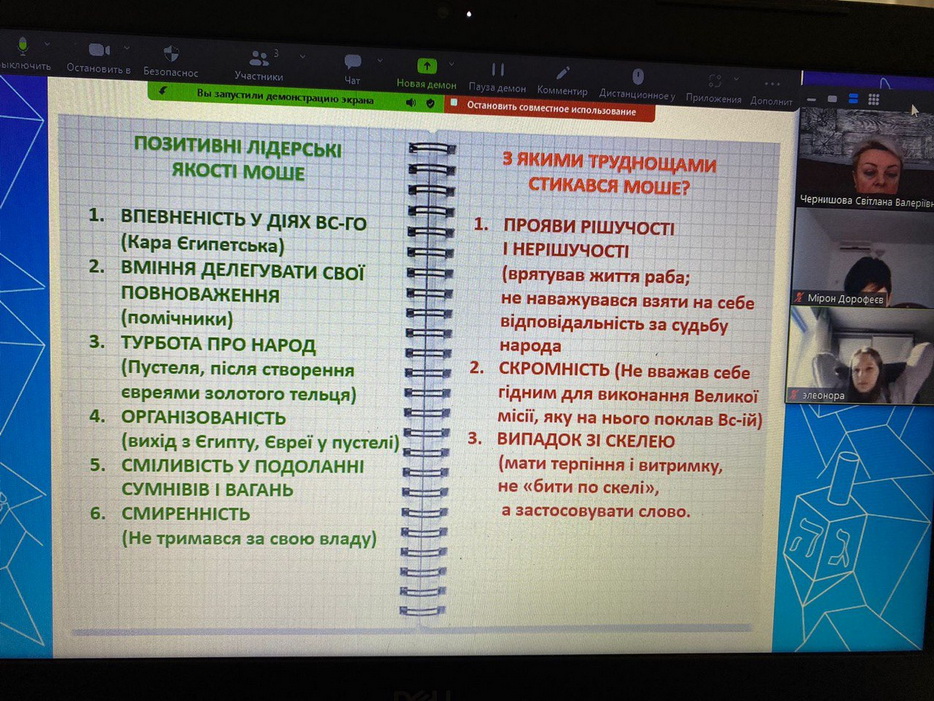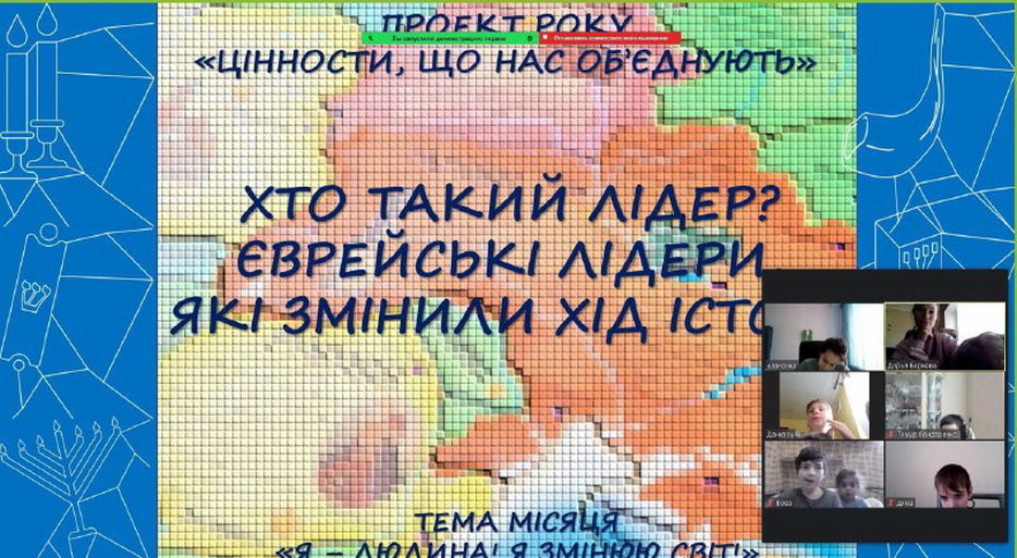 В еврейской школе Днепра «Ор Авнер Хабад Любавич» им. Леви-Ицхака Шнеерсона прошли онлайн классные часы, в рамках общешкольного проекта этого учебного года «Цінності, що нас об’єднують», на котором дети размышляли над темой «Хто такий лідер. Єврейські лідери, що змінили хід історії».