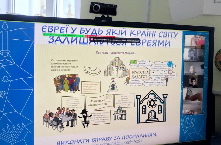 В еврейской школе Днепра «Ор Авнер Хабад Любавич» им. Леви-Ицхака Шнеерсона прошло общешкольное online мероприятие в формате классных часов, в рамках общешкольного проекта этого учебного года «Цінності, що нас об’єднують», на котором дети узнали тему ближайших двух месяцев – октября и ноября – звучащую как «Культура – генетический код нации. Язык. Традиции. Искусство».