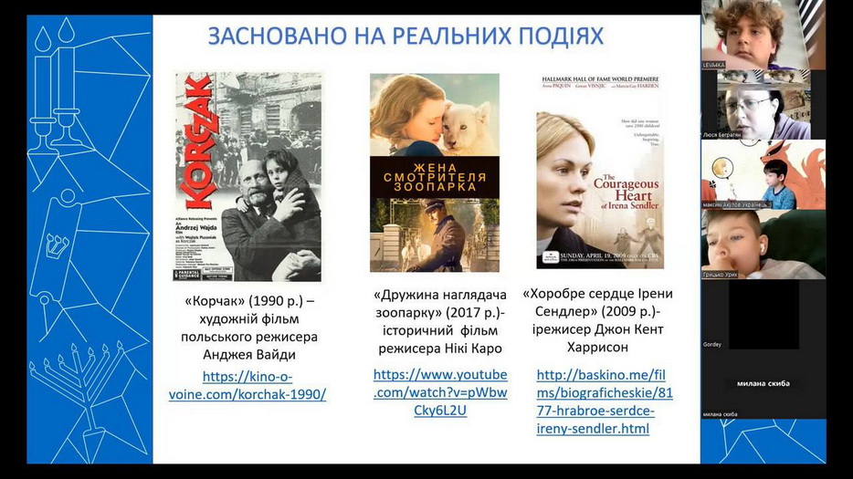 Для старшокласників було проведено дискусійний клуб, на якому разом міркували над питаннями, які турбують все людство: чому про трагедію Голокост нам треба пам’ятати, чи є трагедія Голокоста тільки нашою бідою, чи це трагедія всього людства. Також ми разом зробили online візит у табір смерті «Аушвіц-Біркенау» і переглянули уривки з фільму Стівена Спілберга «Список Шиндлера» та замислились над питанням: «Яка ціна життя людини?».