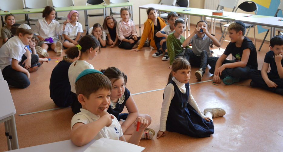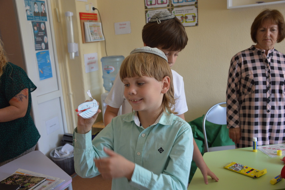 В младшей школе прошли уроки, на которых мы говорили о законах и обычаях этого дня, а кульминацией стала игра «Хавила Оверет», в рамках которой ребята вспоминали законы и запреты, которые они знают или знакомились с новыми. Когда дети закончили игру, они получили коробочки, в которых было все для того, чтобы сделать поделку «Йона и рыба». Вместе с тем малыши узнали историю пророка Йоны и почему эту книгу читают в Йом Кипур.