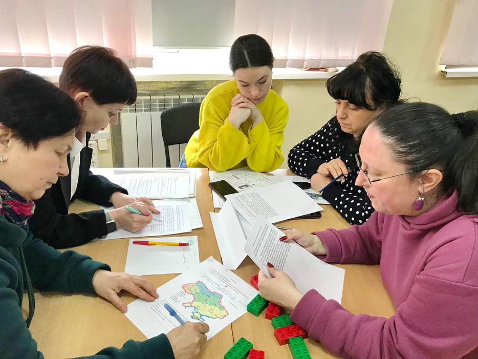 Група №1 у складі Аракелян Гаяне (вчителька початкових класів), Ільченко Олена (вчителька української мови), Раскіна Олена (вчителька англійської мови), Сабіна Вікторія (вчителька англійської мови), Шулешко Ірина (вчителька математики) працювали над розробкою уроку в 4 класі «Природні зони України. Степ».