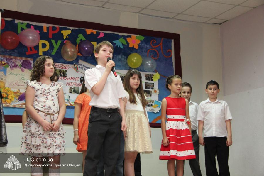 Накануне последнего учебного дня, в еврейской школе Днепропетровска «Ор Авнер Хабад-Любавич» имени Леви-Ицхака Шнеерсона прошел выпускной учеников 4-А класса – большой, радостный, но одновременно и грустный праздник, к которому долго готовились дети, их родители и классный руководитель четвероклассников Наталия Соболева.