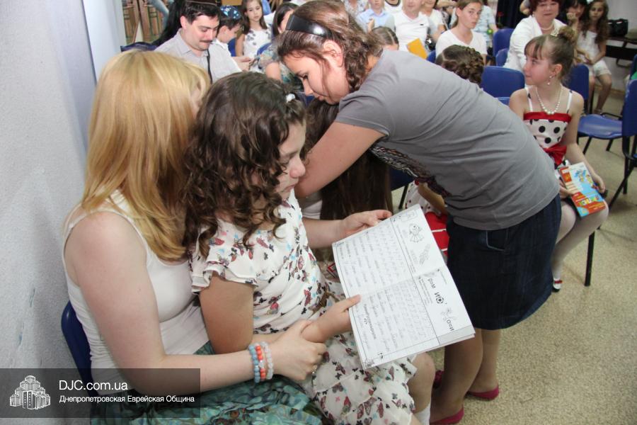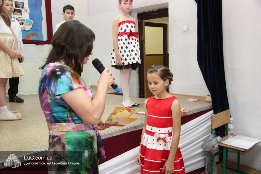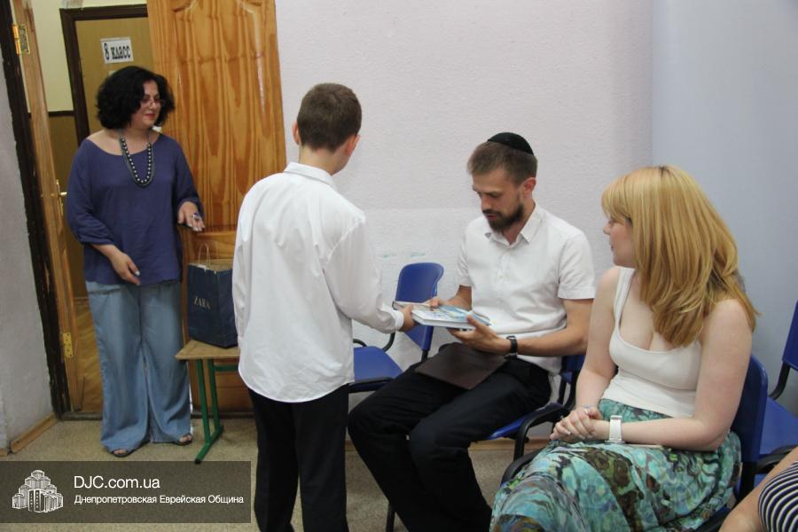 Кульминацией праздника стало вручение ребятам «Диплома выпускника начальной школы», каждый из которых был заверен подписями классного руководителя 4-А и директора школы, а также подарков от родителей – выпускных фотоальбомов и книжных изданий, посвященных великим художникам. Они были вручены ребятам членами родительского комитета Иванной Шарко, Анной Игнашкиной и Анной Данович. Кроме того, особенные подарки ожидали сестер Игнашкиных, Хаю и Симху, для которых этот учебный год был их последним в еврейской школе Днепропетровска, – вместе со своими родителями девочки уезжают в Киев.