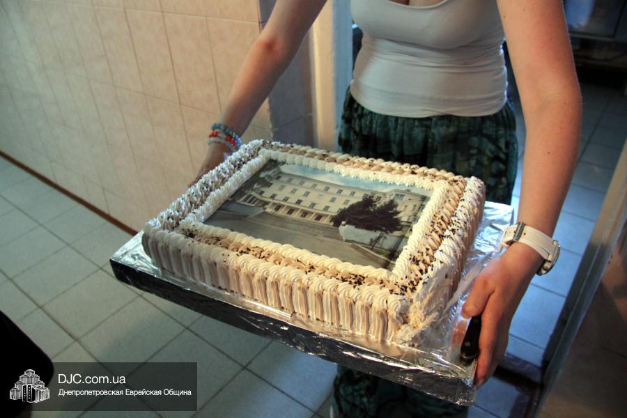 После основного торжества все участники праздника были приглашены в школьную столовую, где их ожидала развлекательная программа с веселыми клоунами и сладкий стол, во главе которого был великолепный торт с изображением фасада еврейской школы.