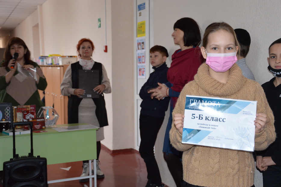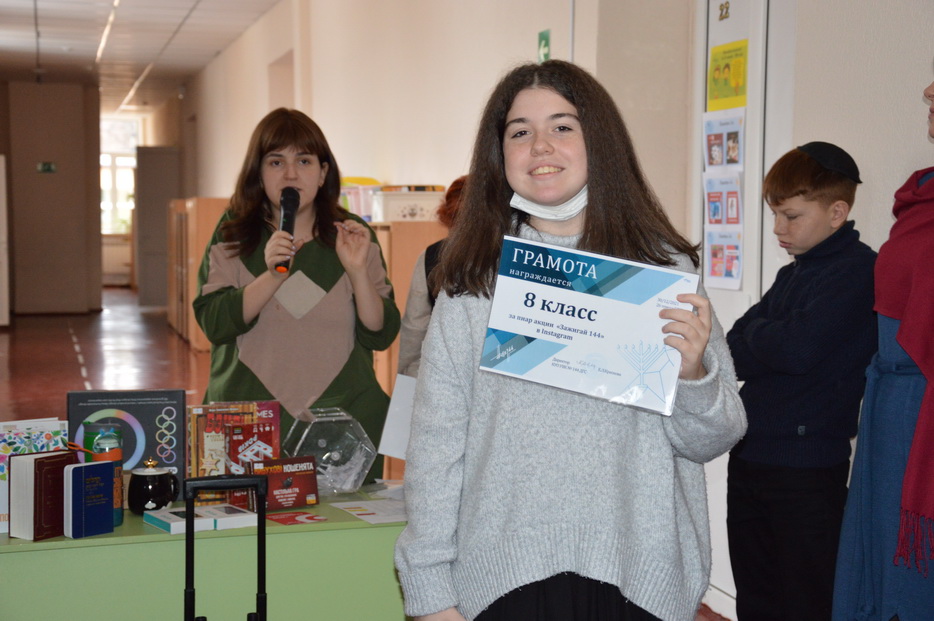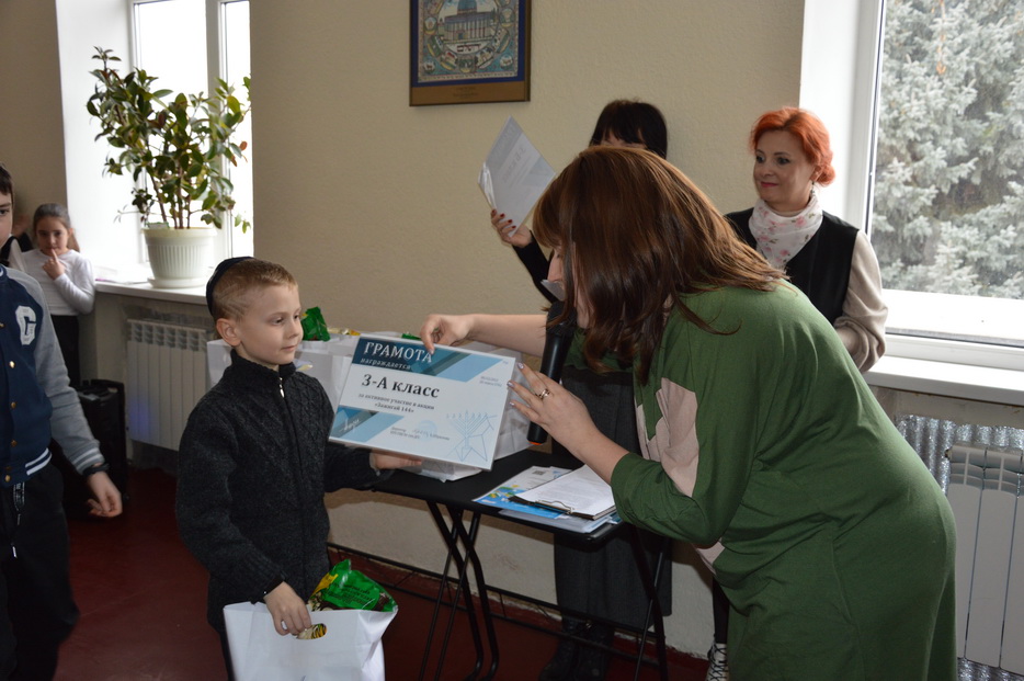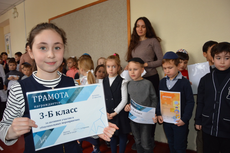 «В школе прошла линейка, на которой были подведены итоги первого семестра, – рассказала нашему сайту завуч школы по воспитательной работе Татьяна Сироткина, – были награждены победители конкурсов и онлайн олимпиад по разным предметам, ребята, которые ежедневно принимали участие в акции «Зажигай 144», были отмечены самые активные классы, а также те дети, которые каждый день зажигали свечи Хануки, приняли участие в розыгрыше призов.