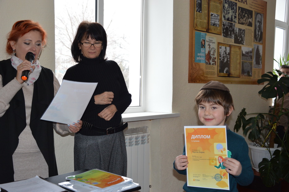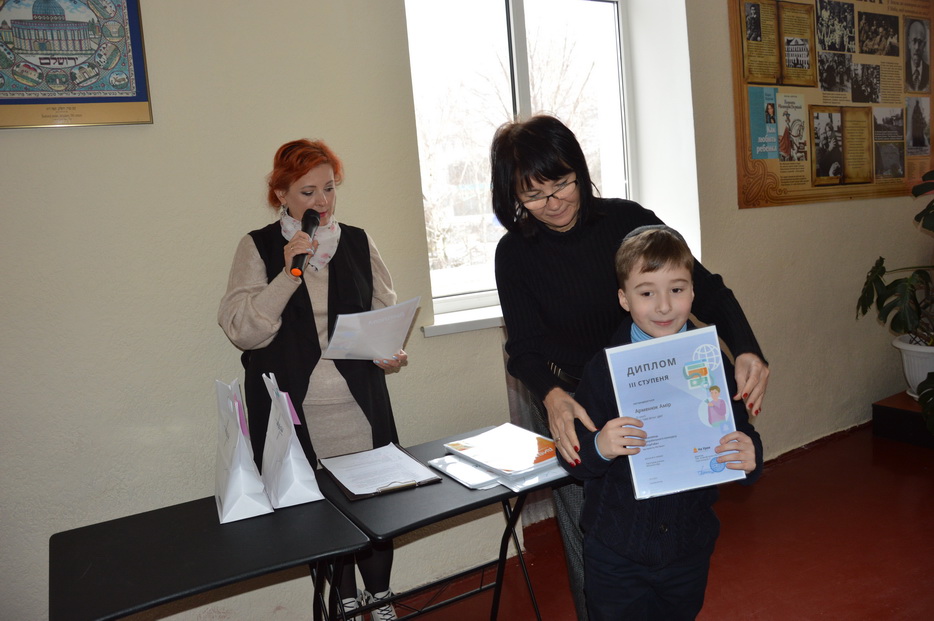 Отдельно были отмечены подарками ученики, принимавшие участие в съемках фильма об истории Еврейской общины нашего города.