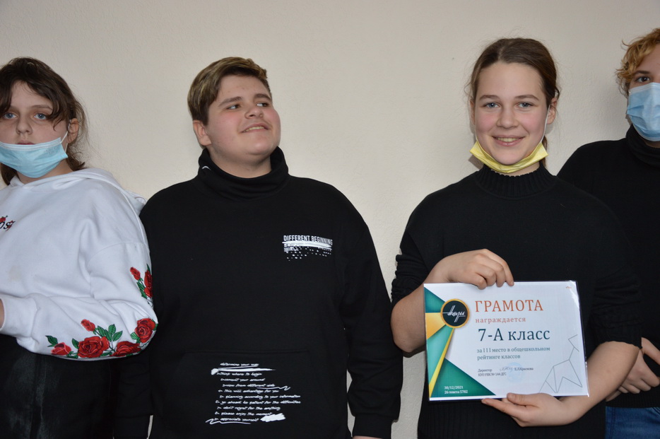 Кульминацией линейки стало награждение победивших в классном рейтинге по итогам I семестра. Третье место занял 7-а класс, классный руководитель Виктория Клевцова; второе место – 9-а класс, классный руководитель Елена Раскина, а первое место занял 5-б класс, классный руководитель Светлана Чернышева.