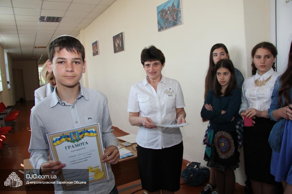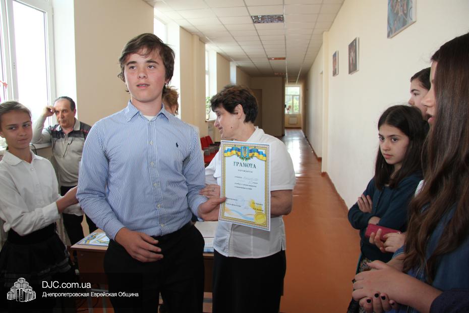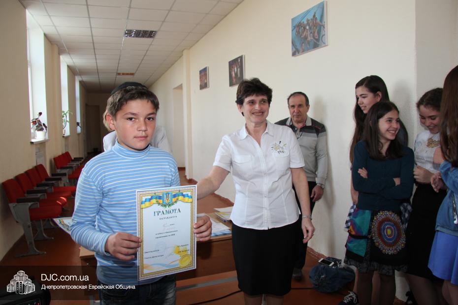 В еврейской школе Днепропетровска «Ор Авнер Хабад-Любавич» им. Леви-Ицхака Шнеерсона прошли традиционные линейки-чествования, на которых торжественно оглашаются имена отличившихся учеников и вручаются им соответствующие грамоты, дипломы и сертификаты. В начале последнего учебного месяца в школе отметили лучших спортсменов и участников различных конкурсов, как городских и всеукраинских, так и международных.