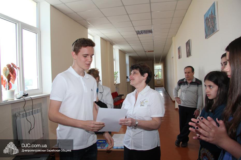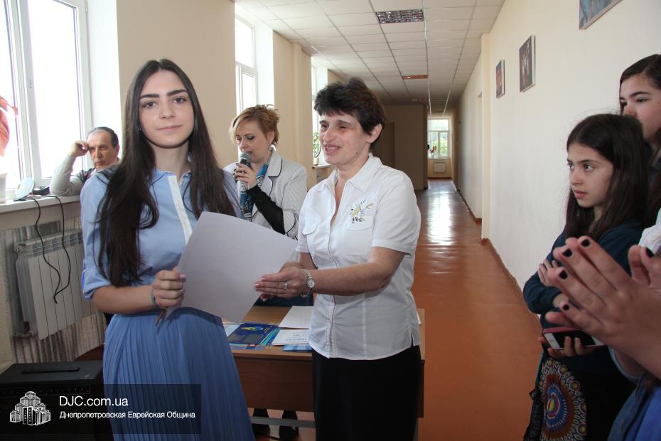 Татьяна Хавкина объявила, что главные награды школы, в том числе международных предметных олимпиад, будут вручены на итоговой линейке, в присутствии руководства еврейской общины и многих почетных гостей.