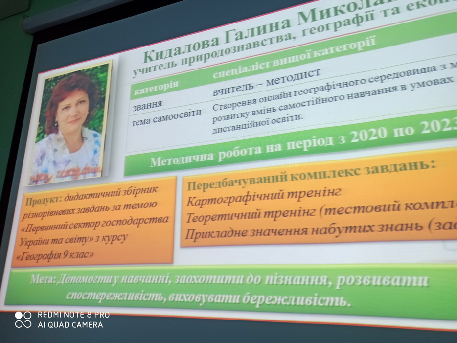 «Впровадження інтерактивних технологій ситуативного моделювання як засобу розвитку навчально-пізнавальної компетентності та компетентності особистісного самовдосконалення особистості учня в процесі вивчення фізики», которую представляла Люся Беграгян; «Використання та створення інтерактивних презентацій, тренажерів та відеопрезентацій з метою саморозвитку та розвитку», о которой рассказала Светлана Чернышова; «Створення практичного наповнення для розвитку компетентностей на уроках української мови в системі НУШ», презентованную Дарьей Барковой; «Первинний сектор господарства України і світу. Географія 9 класс» — Галина Кидалова, а Татьяна Сироткина представила тему «Використання цифрової лабораторії «Labdisc Biochem» на уроках хімії та у науково-дослідницькій діяльності як елемент впровадження stem-освіти в контексті компетентісного підходу» .
