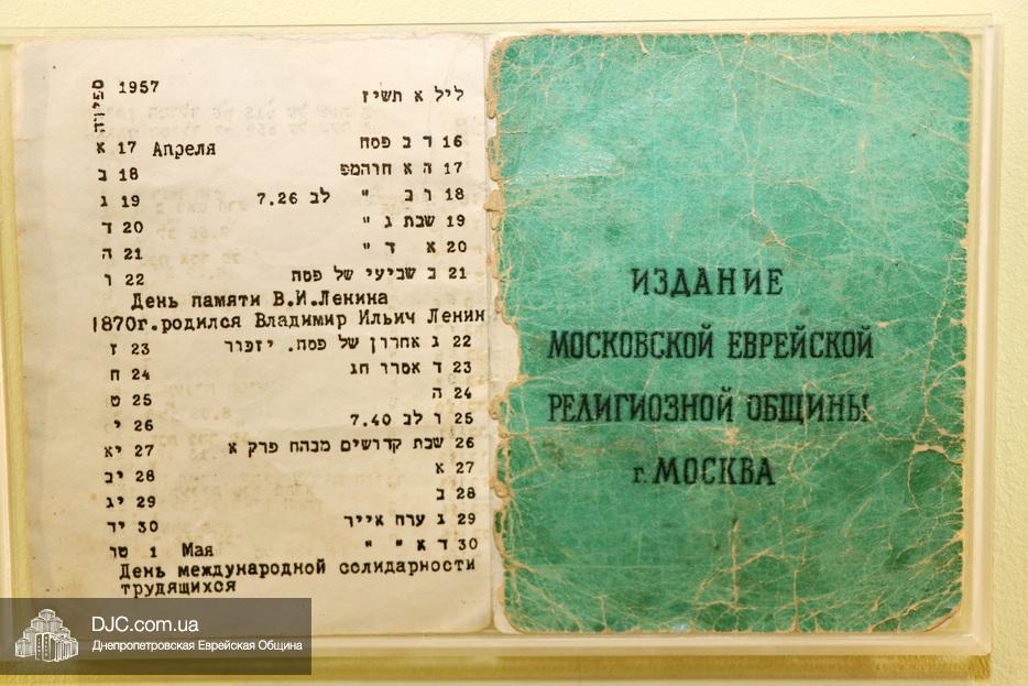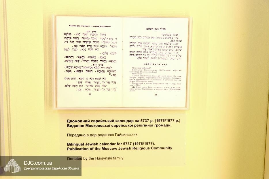 Экспозиция Музея «Память еврейского народа и Холокост в Украине» пополнилась новыми экспонатами, которые передала в дар этой институции семья Гайсинских. Два календаря печатные, издание Московской хоральной синагоги на 5717 (19561957) и 5737 (19761977) года, а один самодельный рукописный на 5714 (19531954) год.