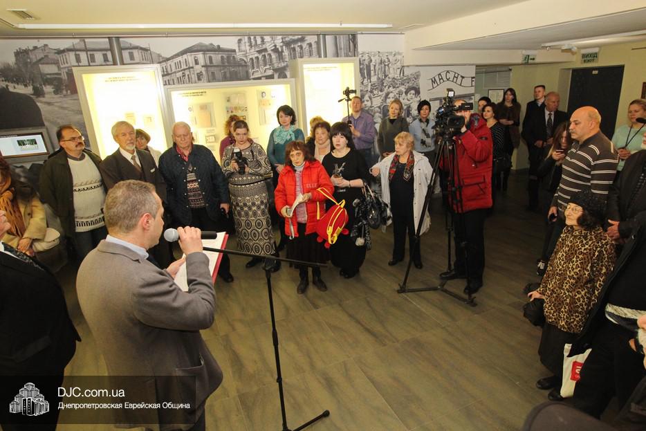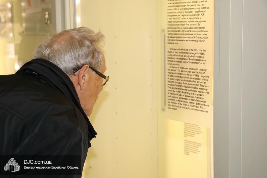 Открытая в день юбилея экспозиция охватывает весьма широкий пласт различных тем и имеет разнонаправленные нарративы, среди которых и замалчивание Холокоста, и государственный антисемитизм, и диссидентство, и, даже, спортивные достижения евреев Приднепровья. О важности увековечивания памяти жертв Холокоста, особенно сейчас, когда свидетели той эпохи уходят из материального мира, подробно рассказал председатель Совета евреев-ветеранов Соломон Флакс, сделав упор на то, что, кроме рассказа о явлениях, Музей и еврейская община в целом должны приложить усилия по увековечиванию памяти конкретных жертв Холокоста, прежде всего, установить стелы с их именами на месте расстрела в балке Ботанического сада. «Евреи следующих поколений должны знать не просто цифры, но видеть имена своих родных, понимать, что это история их семьи, а не некое событие давнего прошлого. Мы должны сделать это, и у нас не так много осталось времени», – подчеркнул Соломон Флакс.