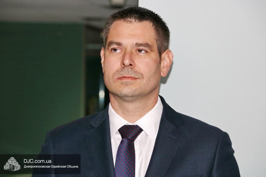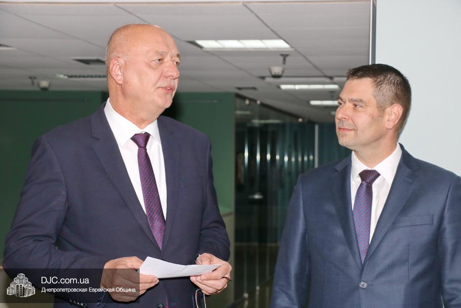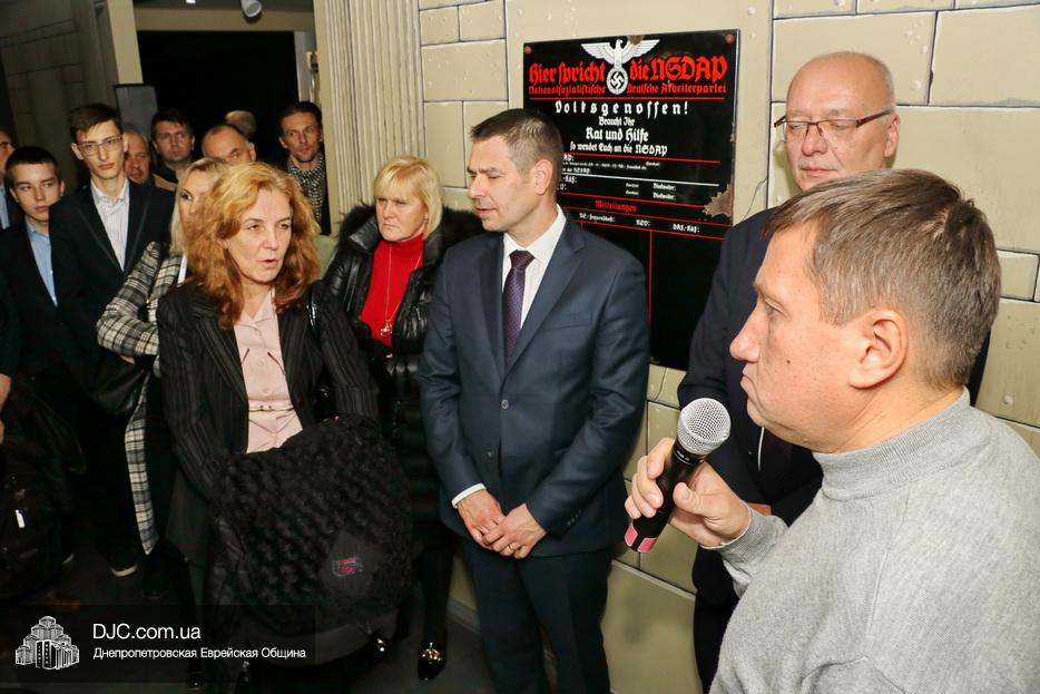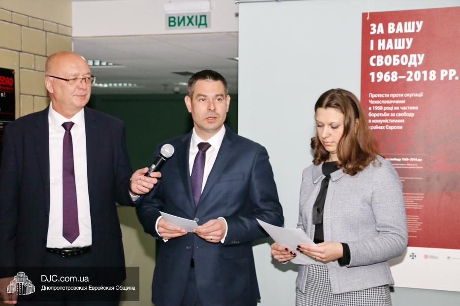 С приветственным словом к гостям обратились: заместитель министра промышленности и торговли Чешской республики Иржи Гавличек, Чрезвычайный и Полномочный Посол Чешской Республики Радек Матула, советник городского головы и член правления Днепровской еврейской общины Олег Ростовцев, руководитель научного отдела Еврейского Музея Днепра Денис Шаталов.