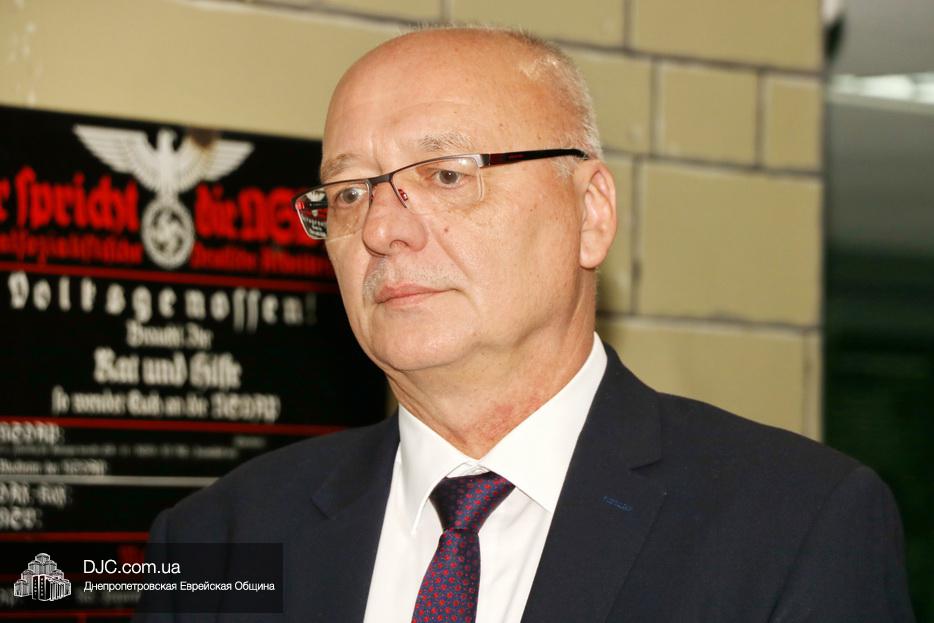 Первую экскурсию по выставке провел ее куратор в Днепре, научный сотрудник музея «Память еврейского народа и Холокост в Украине» пан Валентин Рыбалко.