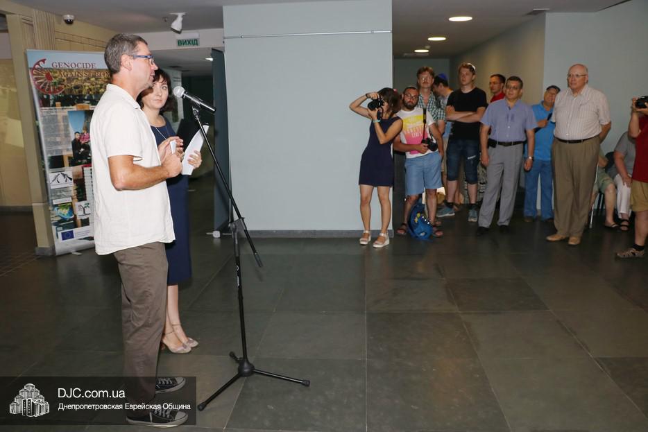На открытии выступили: генеральный консул Федеративной Республики Германия Вольфганг Мессингер, директор УИИХ «Ткума» и музея «Память еврейского народа и Холокост в Украине» доктор Игорь Щупак, координатор проекта выставки Франк Брендл (Берлин, Германия), а также представитель совета Евреев-ветеранов Семен Фридман и представитель ромской общины нашего города, заслуженный деятель искусств Украины Любовь Власова. Провел церемонию открытия руководитель научно-музейного отдела УИИХ «Ткума» доктор Егор Врадий.